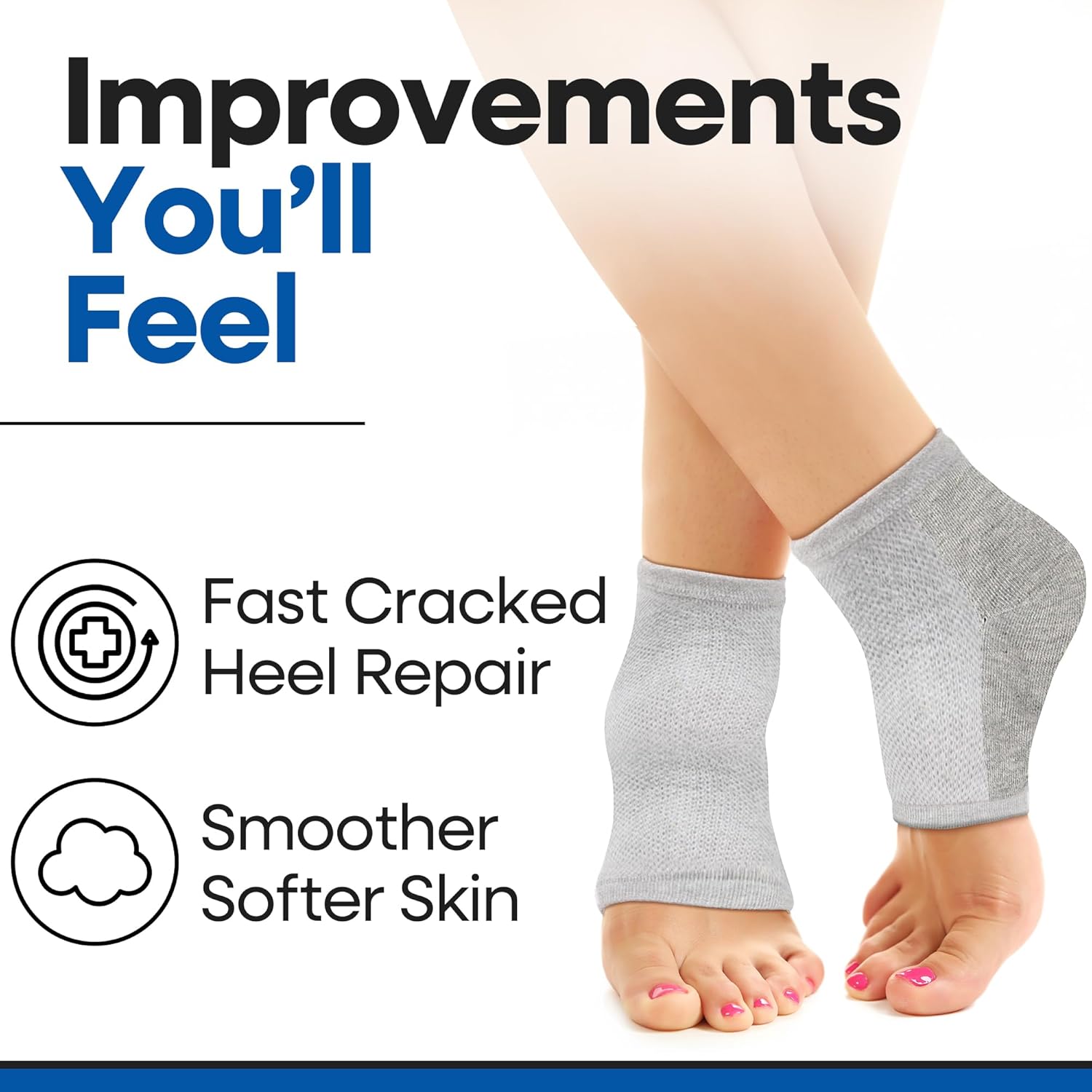 - FOOT & HEEL CARE: Soften and smooth your dry cracked heel skin the easy way and make sure to check out all our full range of silicone socks, moisturizing heel sleeves, gel socks, heel cups, pedicure socks, and foot care products.