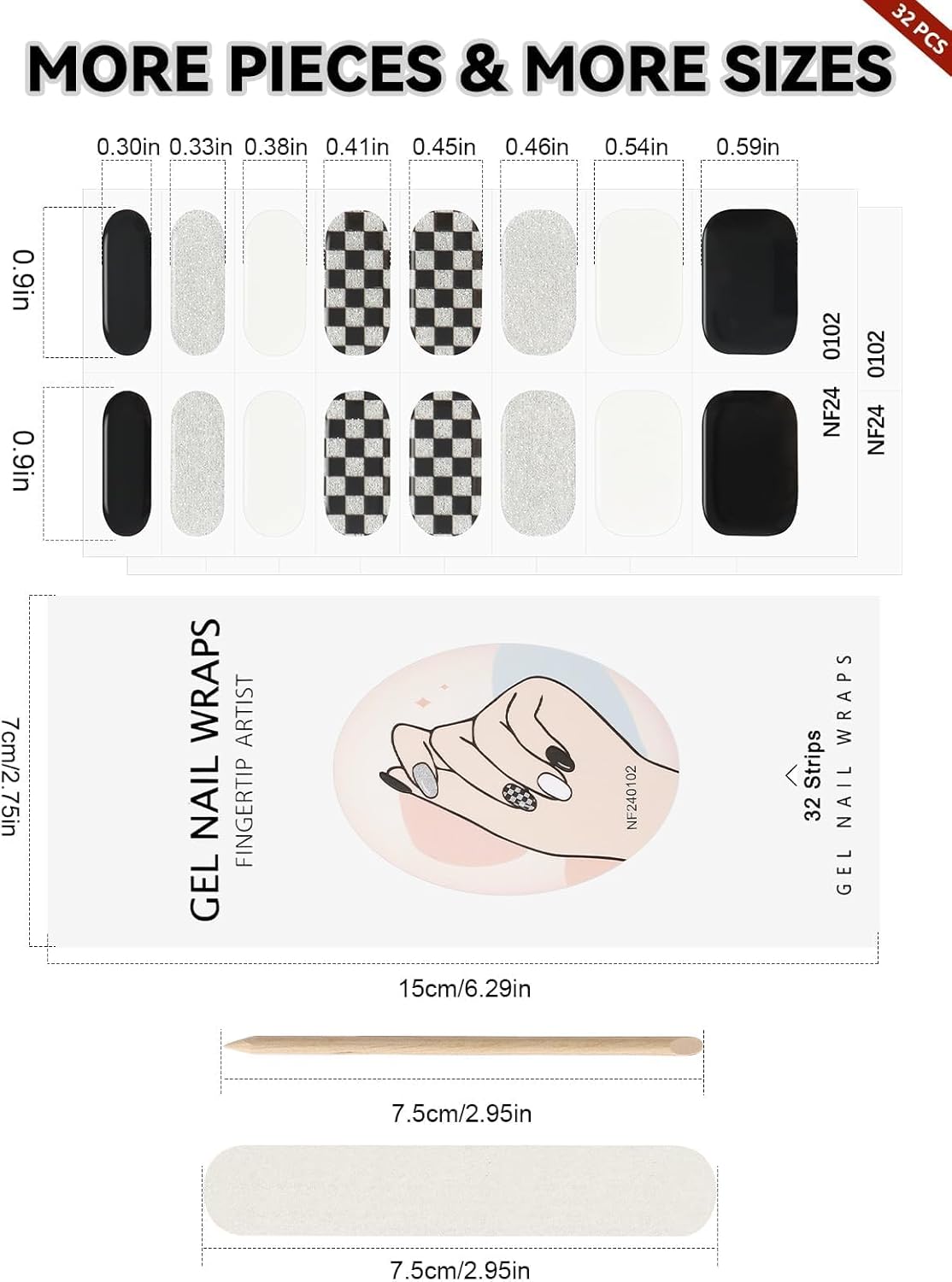 - UV Gel Nail Art Strips: EBANKU semi-cured gel nail wraps, cured with UV/LED lamp to get a real nails beauty without nail salon. Package includes 32pcs gel nail strips stickers with 1pc nail file, 1pc nail stick put into a paper box.