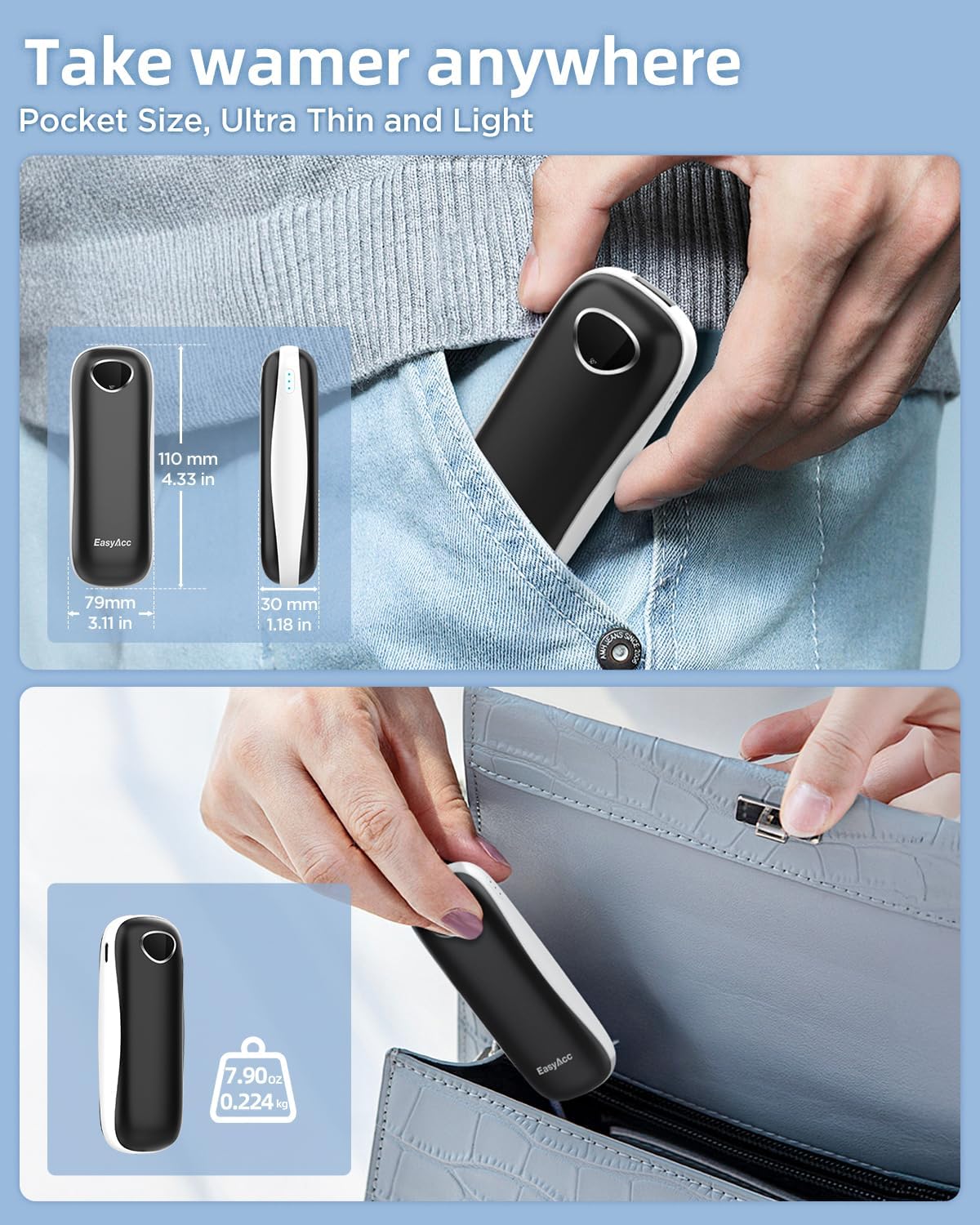 - 【A Heartfelt Gift for Cold Hands and Raynaud's Patients】Warm their hearts and hands with EasyAcc 2 pack rechargeable hand warmer, the perfect gift for those with Raynaud's disease or perpetually cold hands. Lightweight and rechargeable, it's ideal for home, work, or on-the-go. Give the gift of warmth and show your loved ones they’re truly cared for—because everyone deserves a little extra comfort this winter!