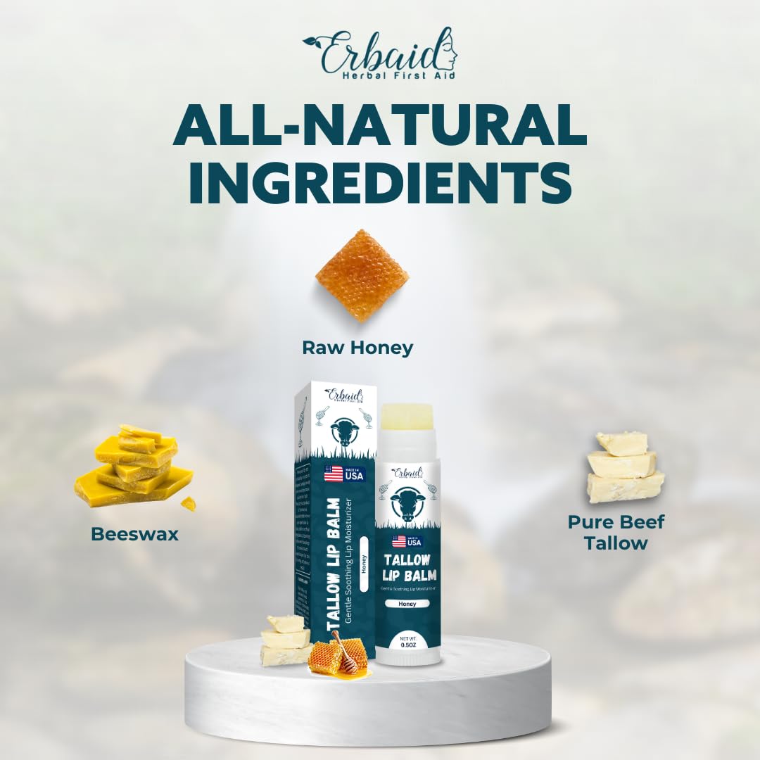 - NATURAL GENTLENESS MADE IN USA: Embrace natural skincare with our organic lip balm. A hypoallergenic blend of beef tallow and beeswax, this all-natural lip balm is ideal for sensitive skin, minimizing the risk of allergic reactions for a naturally gentle lip care choice.
