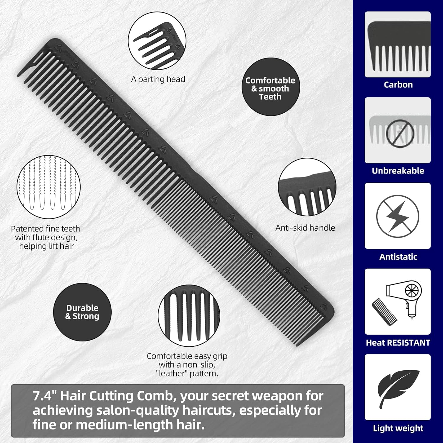 - Ideal for Fine Cutting: This lightweight carbon fiber comb is perfect for barbers, stylists, and home users handling mid-length to short hair or bob cuts. The Special Sectioning Tooth feature enables easy parting and sectioning, perfect for advanced and basic fine cutting.