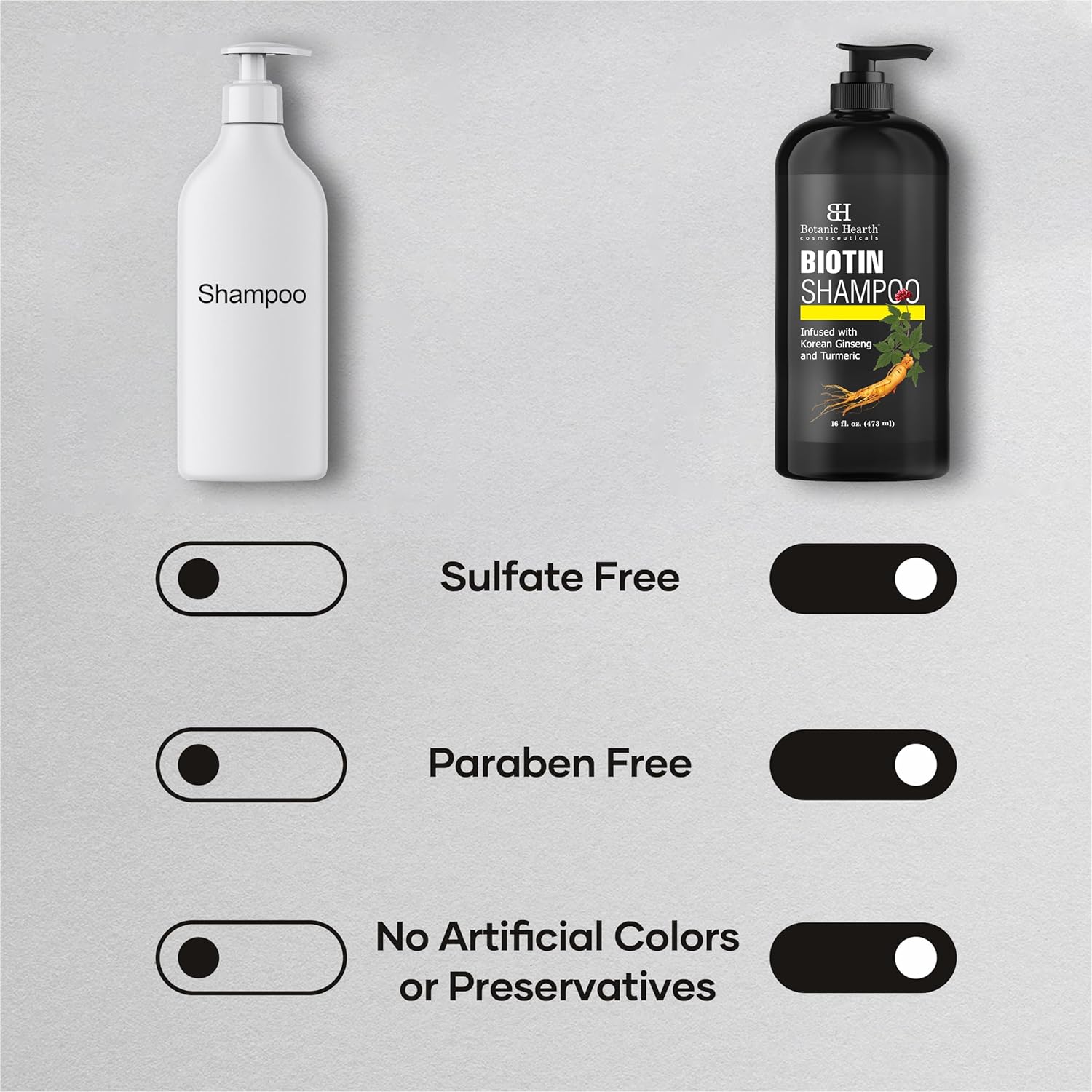 Botanic Hearth Biotin Shampoo | Infused With Korean Ginseng & Turmeric For Stronger, Thicker | Looking Hair | Sulfate & Paraben Free | 16 Fl. Oz