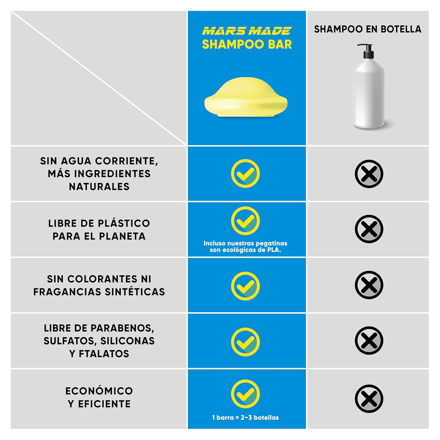 • PLEDGE TO QUALITY. We love hearing how much customers appreciate the effectiveness of Mars Made Shampoo Bars! Our bottle-free bars provide luscious locks and are equivalent to at least 2 bottles of liquid shampoo. Mars Made proudly supports adults with special needs through the production and packaging of every product.