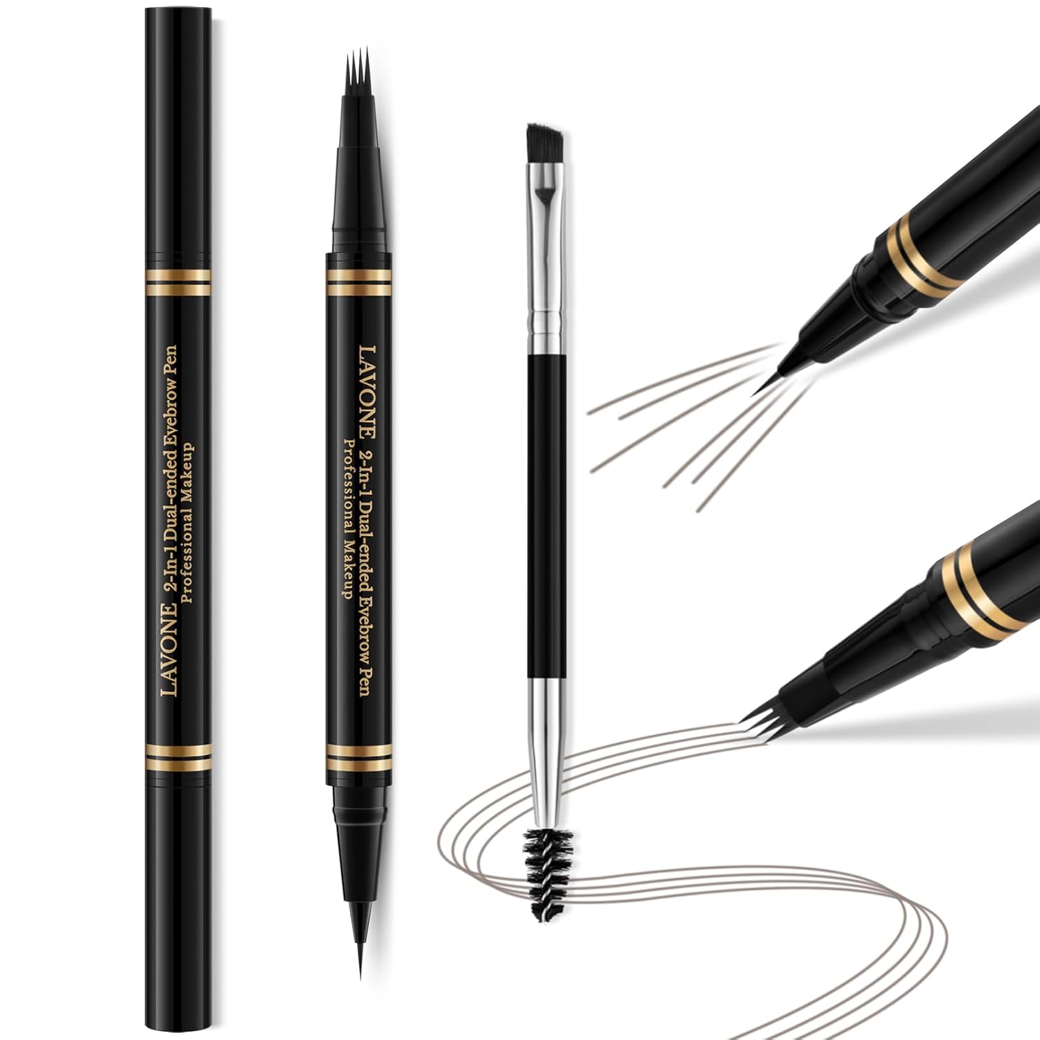 - 【Waterproof Hair-Like Eyebrow Pen】: LAVONE innovative 2-in-1 dual-ended eyebrow pen with 4 tip microblade eyebrow pencil fill and blend color into eyebrows,draw 3D natural real hair, and ultra-precise pen makes realistic hair-like strokes & fill in sparse areas. It glides on easily and smooth to build natural looking, flawless, symmetrical and fuller brows with up to 24HR wear for brows. It’s long-lasting, smudge-proof, and waterproof.