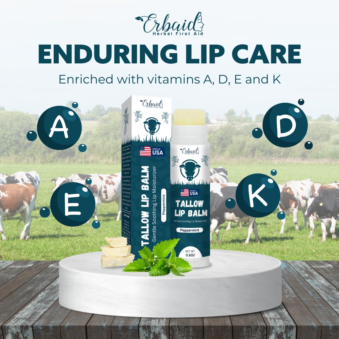 - INTENSELY HYDRATING FORMULA: Immerse your lips in moisture with our grass-fed organic beef tallow lip balm with peppermint flavor. Crafted with natural fats, akin to those in human skin, it maintains your lips' moisture barrier for enduring hydration and velvety softness.
