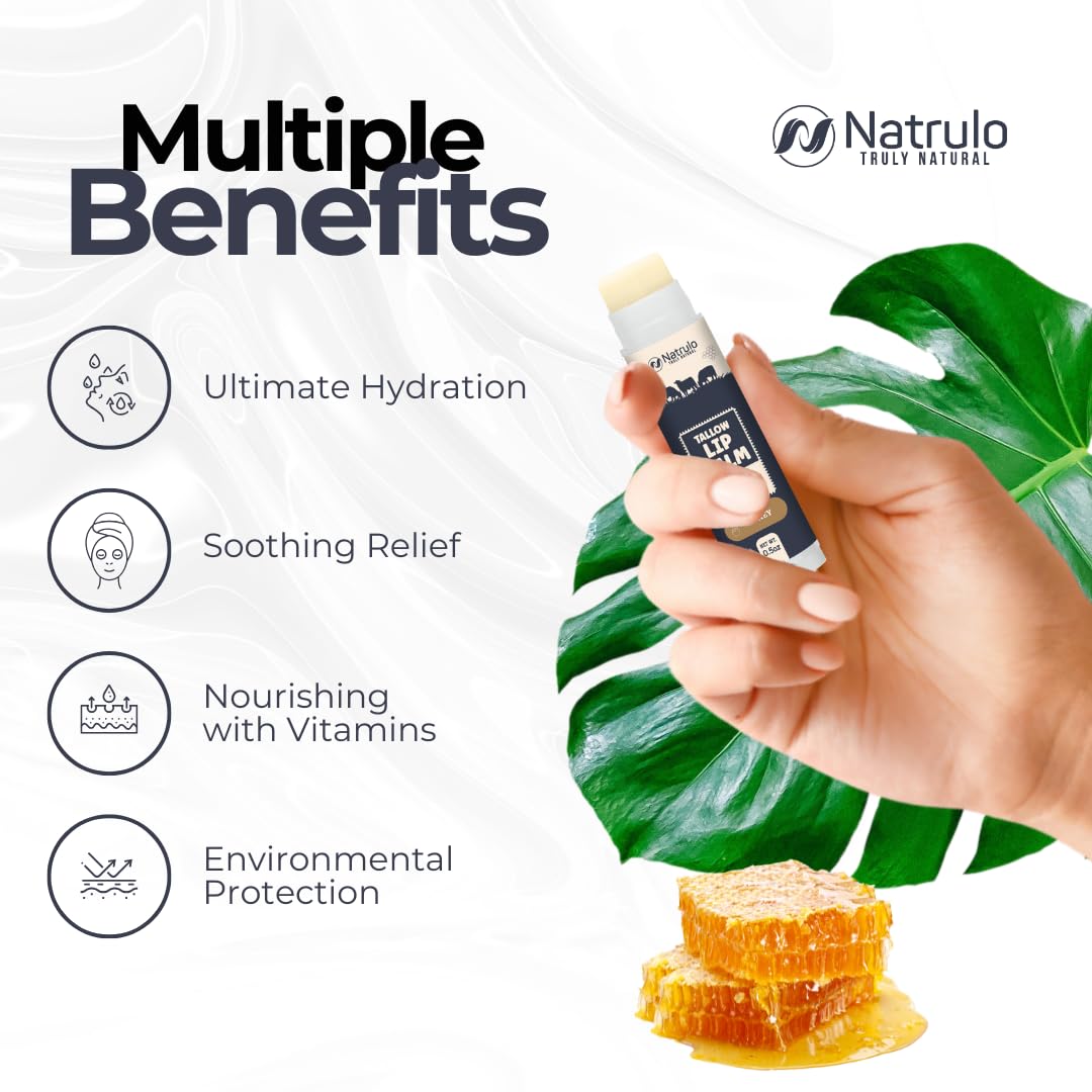 - INTENSELY HYDRATING FORMULA: Immerse your lips in moisture with our grass-fed organic beef tallow lip balm. Crafted with natural fats, akin to those in human skin, it maintains your lips' moisture barrier for enduring hydration and velvety softness.