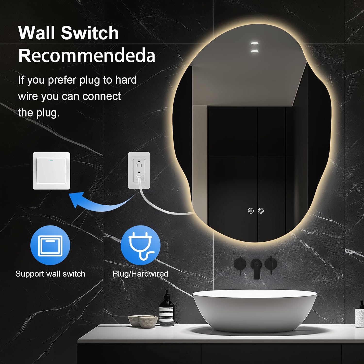 - Safety & Durability: The corrosion-resistant aluminum frame and IP54 waterproof rating make this asymmetrical LED bathroom mirror perfect for use in humid environments, especially over sinks.