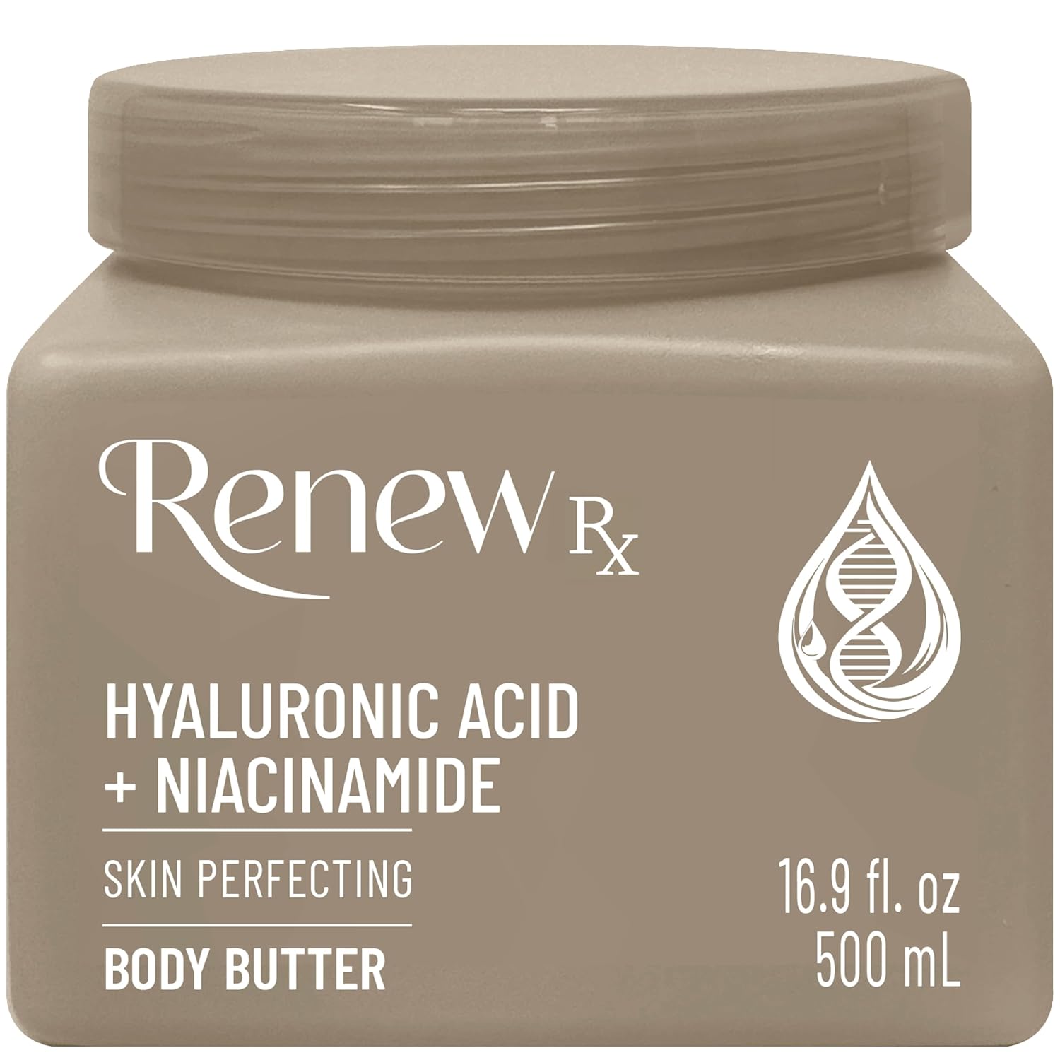 Hyaluronic Acid + Niacinamide Body Butter for Dry Skin – Deep Hydrating Skin Care, Skin Perfecting Vegan Skincare, 16 oz