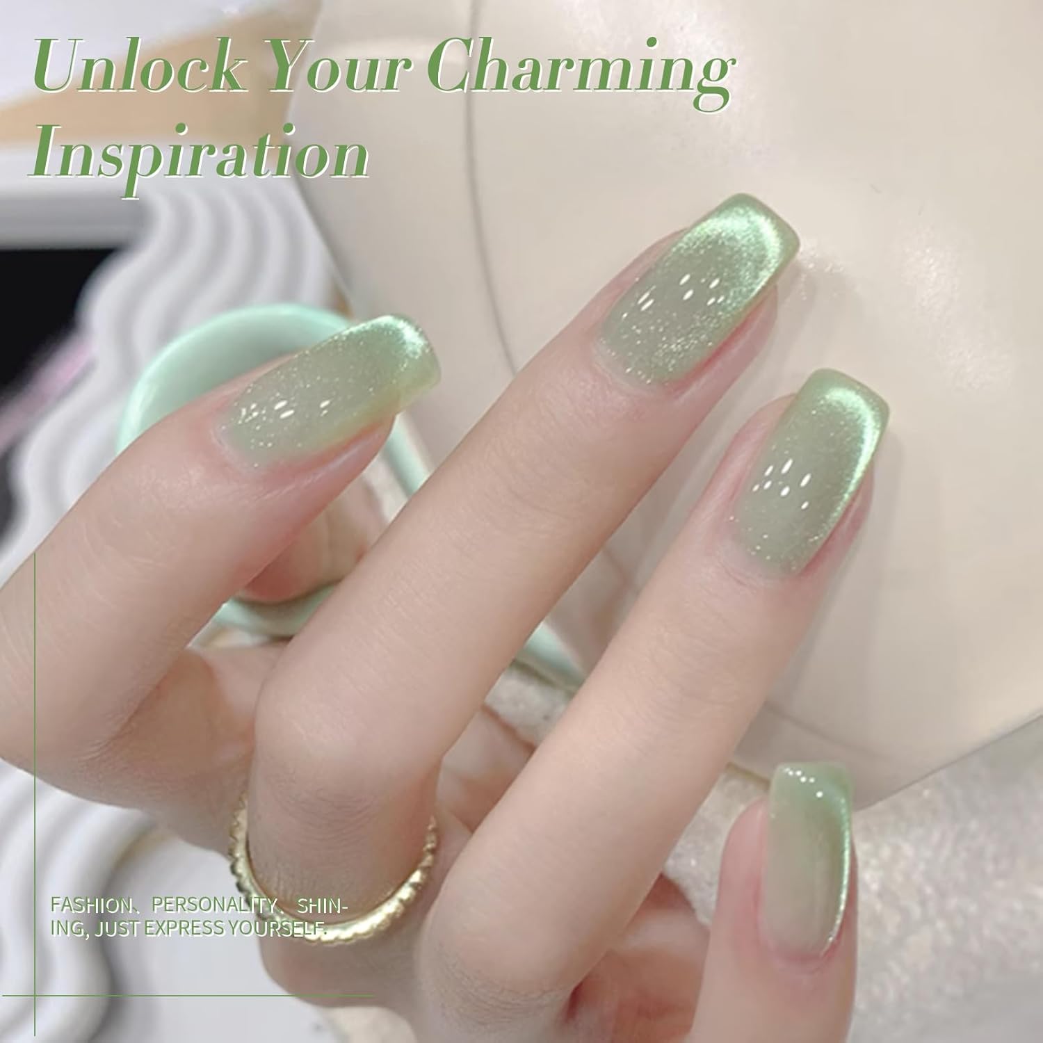 BORN PRETTY Green Cat Magnetic Eye Gel Nail Polish Shimmer Glitter Holographic Aurora Green Magnetic Gel Polish Nail Art Manicure DIY at Home 15ML