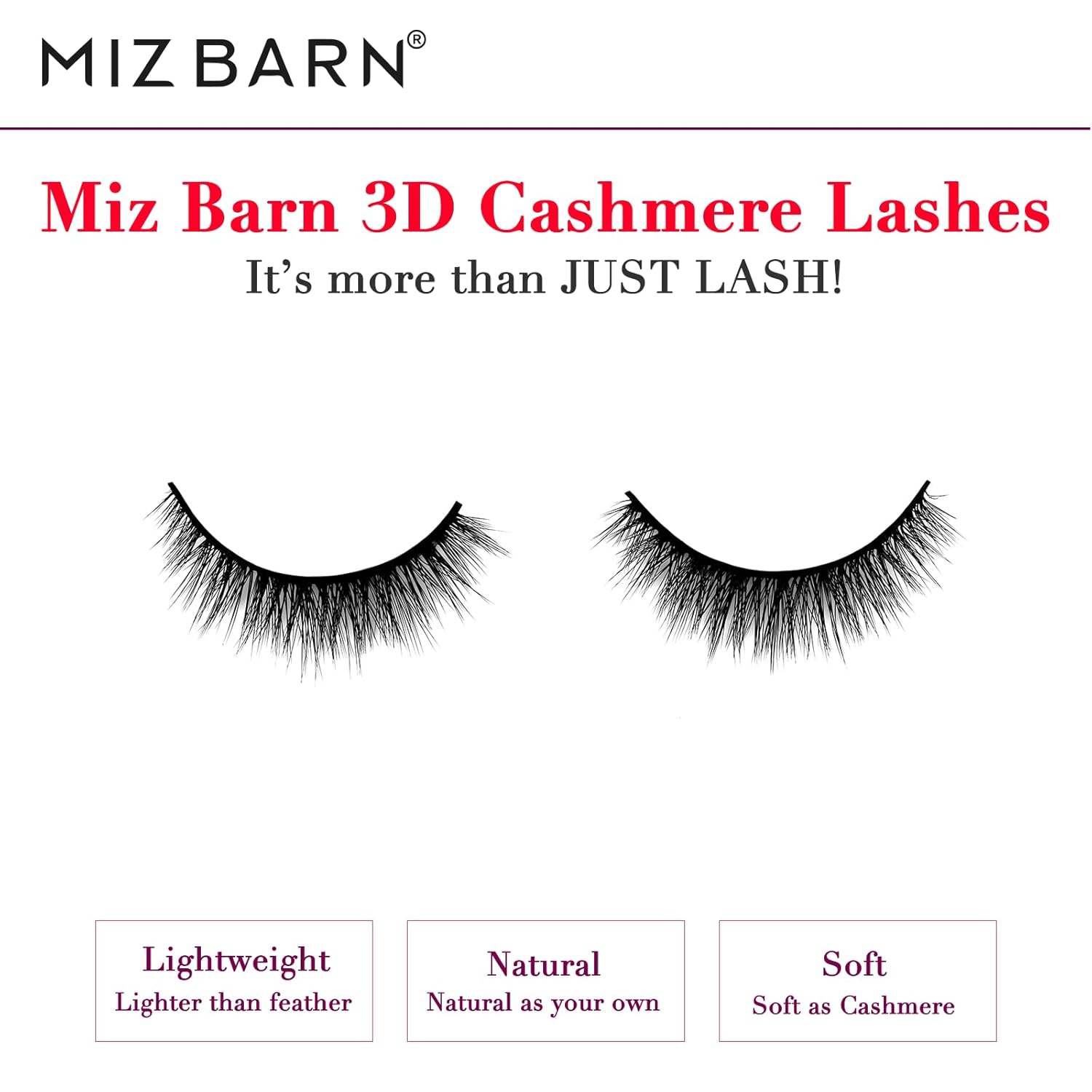 - 【CRUELTY-FREE】Miz Barn 3D CASHMERE Lashes, it is 100% CRUELTY-FREE. It’s MORE THAN JUST LASH!