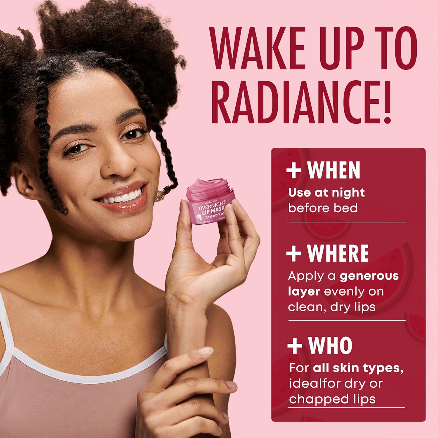 Watermelon Lip Mask - Dermatologist Tested, Anti-Aging, Korean Skin Care, Deep Hydration, Overnight Lip Repair - Vegan, Clean Beauty, 95% Natural, Cruelty-Free - 1 Pack