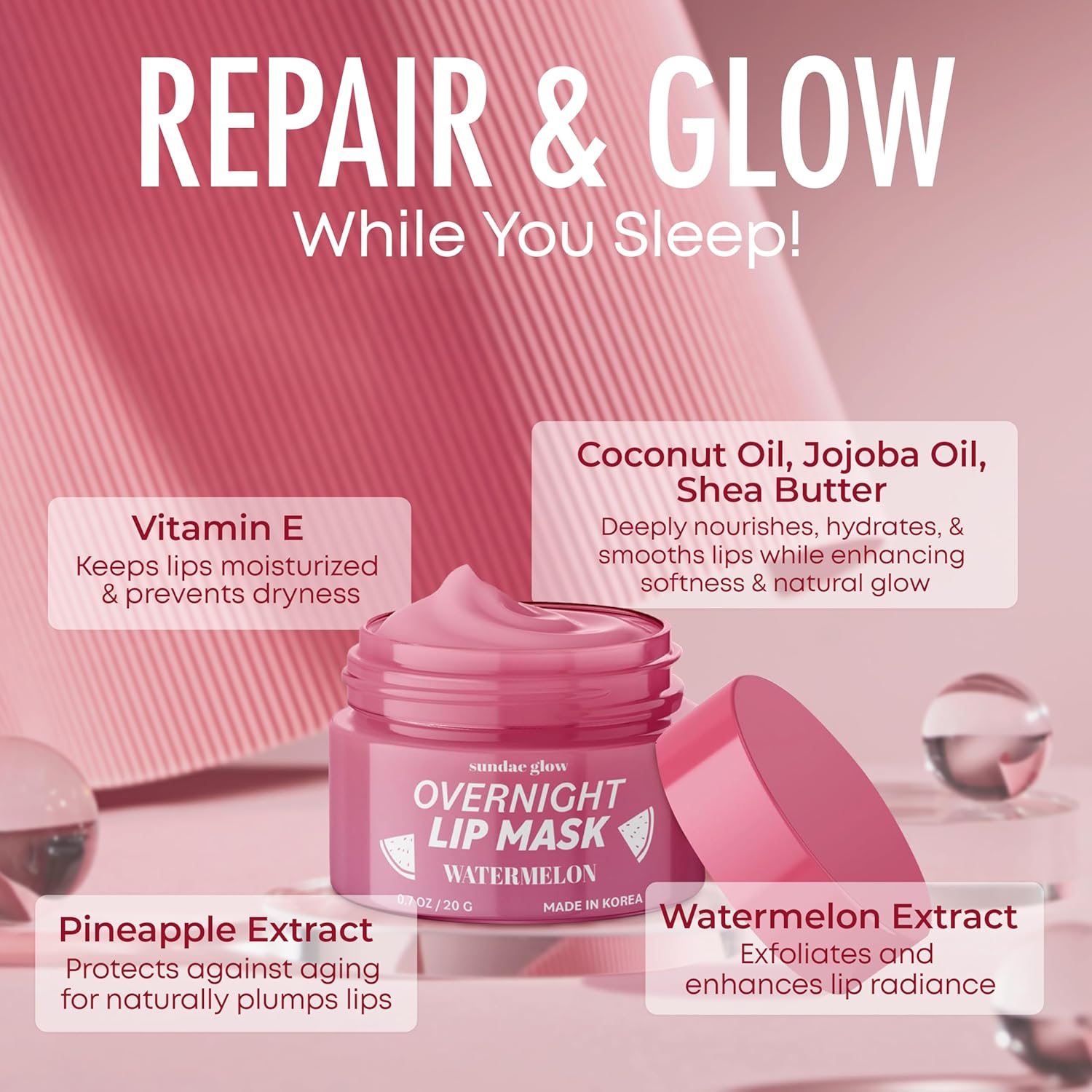 - INTENSE HYDRATION & REPAIR - Wake up to irresistibly soft, baby-smooth lips! This ultra-nourishing overnight lip mask deeply hydrates, soothes dryness, and repairs cracked, chapped lips while you sleep, restoring moisture and firmness for plump, healthy-looking lips by morning.