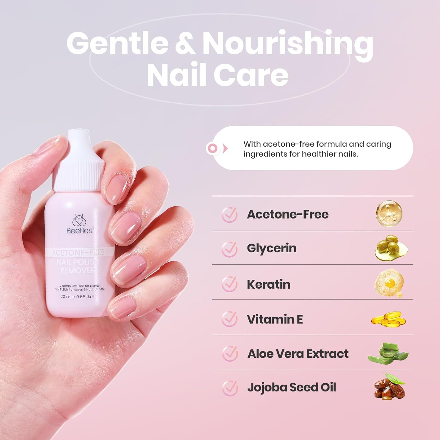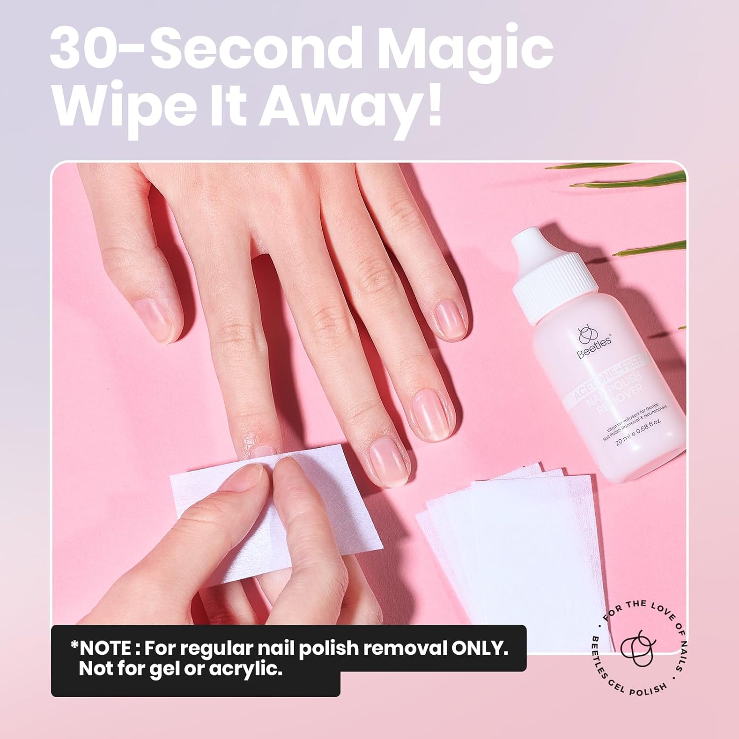 Beetles Non Acetone Nail Polish Remover - 0.67Fl Oz/20ML Controllable Nourishing Formula Acetone Free Nail Polish Remover - Non-Drying - Professional Quick and Gentle Removal for Natural Damaged Nail