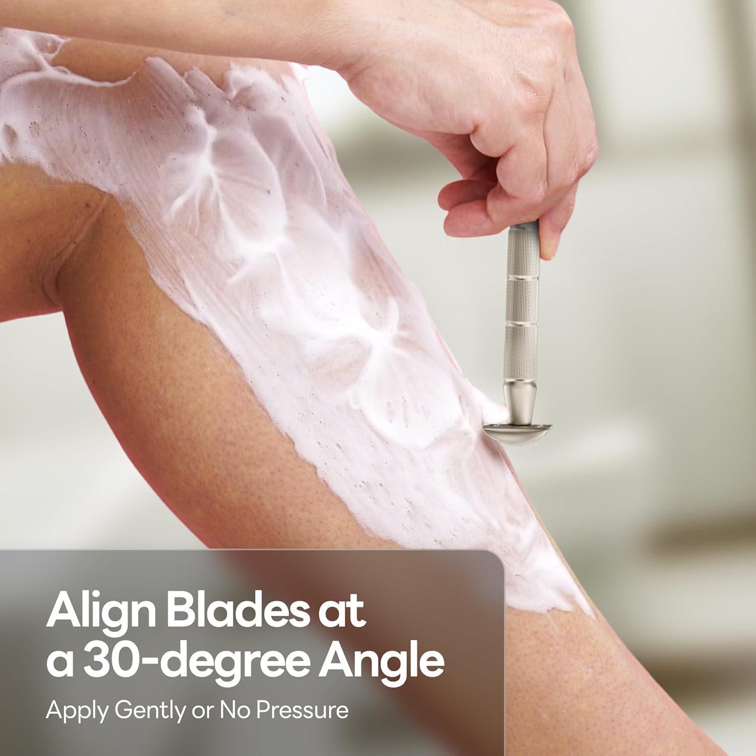 - DESIGN FOR BEGINNER :CAVEEM's reusable metal razor offers effortless, precise shaving with light glides. Its innovative handle design is non-slip crafted for comfortable grips, allowing smoother shaving at a 30-degree angle