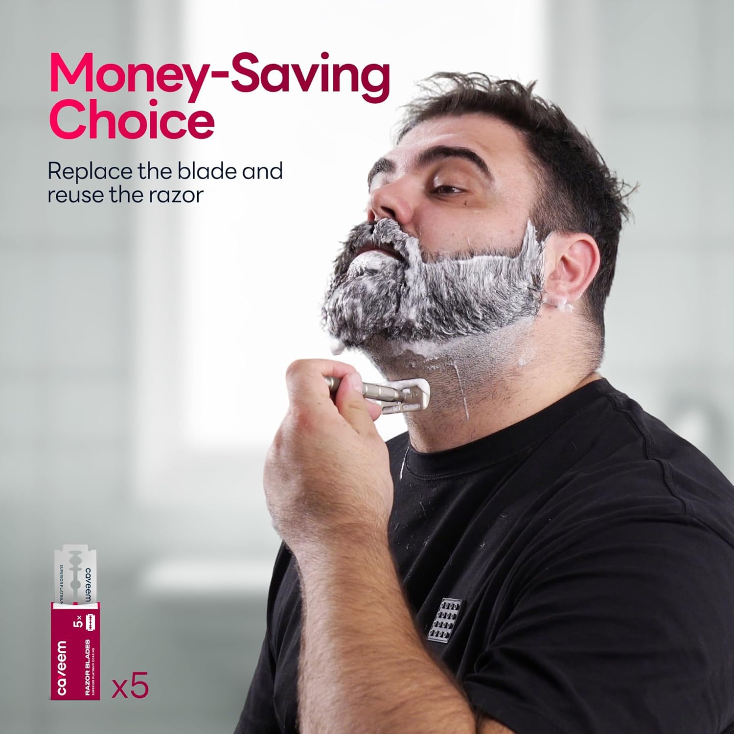 - TAKE PLEASURE IN PRACTICAL SHAVING : Ditch disposable plastic razors with CAVEEM’s metal razor and replaceable double-edged blades, reducing plastic waste while supporting endurable products while maintaining high-grade lives