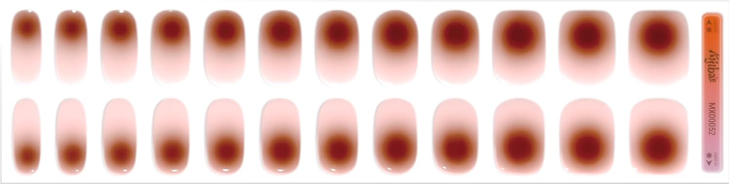 Semi Cured Gel Nail Strips - Minimalist Ombre Nail Polish Wraps, Works with Any UV Lamp - Long Lasting Easy Salon Manicure - 24pcs with 2 Prep Pads, Nail File & Cuticle Stick (Chocolate Bar)