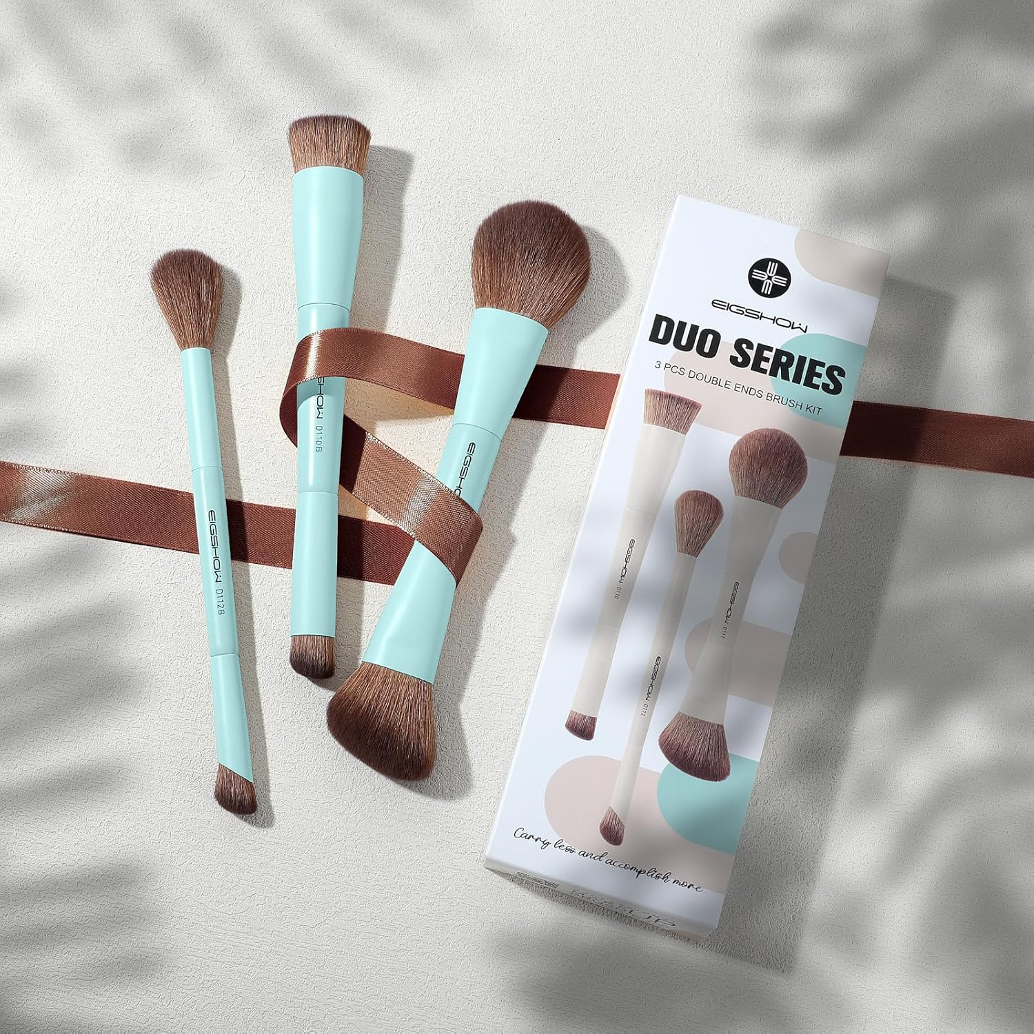 EIGSHOW Makeup Brush Set, 3Pcs Dual Ended Face Makeup Brushes for Foundation Powder Contour Highlight Concealer Nose Shadow, Travel Gift Set (Cyan)
