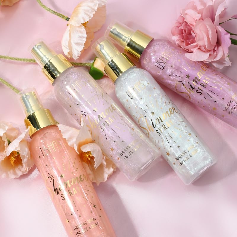 USHAS Body Glitter Spray 3.72 fl.oz - Temporary Body Shimmer Spray for Face, Hair, Clothing, Long Lasting Quick-Drying Shiny for Music Festival Rave (03)