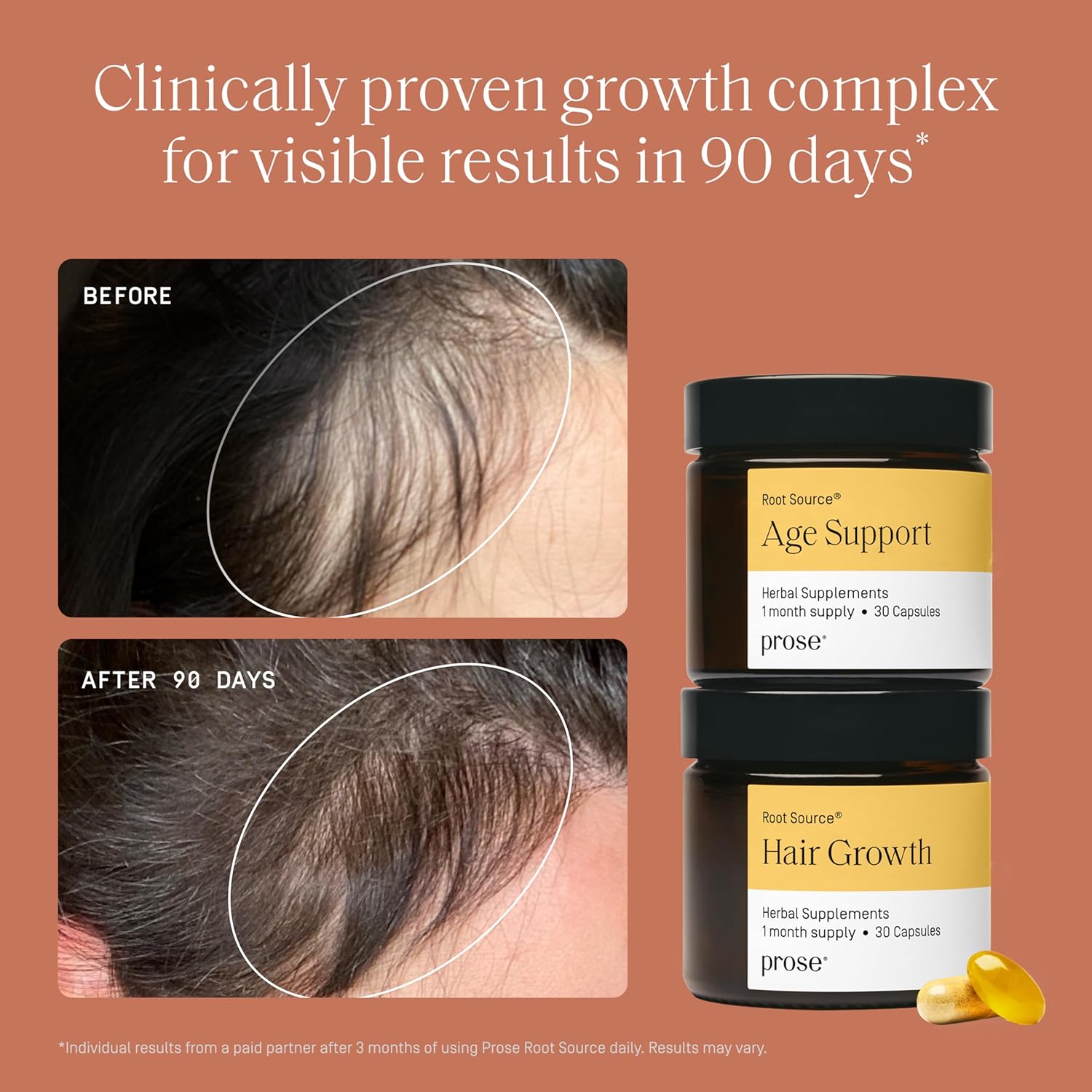 Prose Women’s Age 45+ Hair Growth & Age Support Supplements, Clinically Proven Growth Complex for Visibly Fuller Hair in 90 Days, Vegan, Biotin, No Hormone Disruptors, Gluten Free, 1 Month Supply