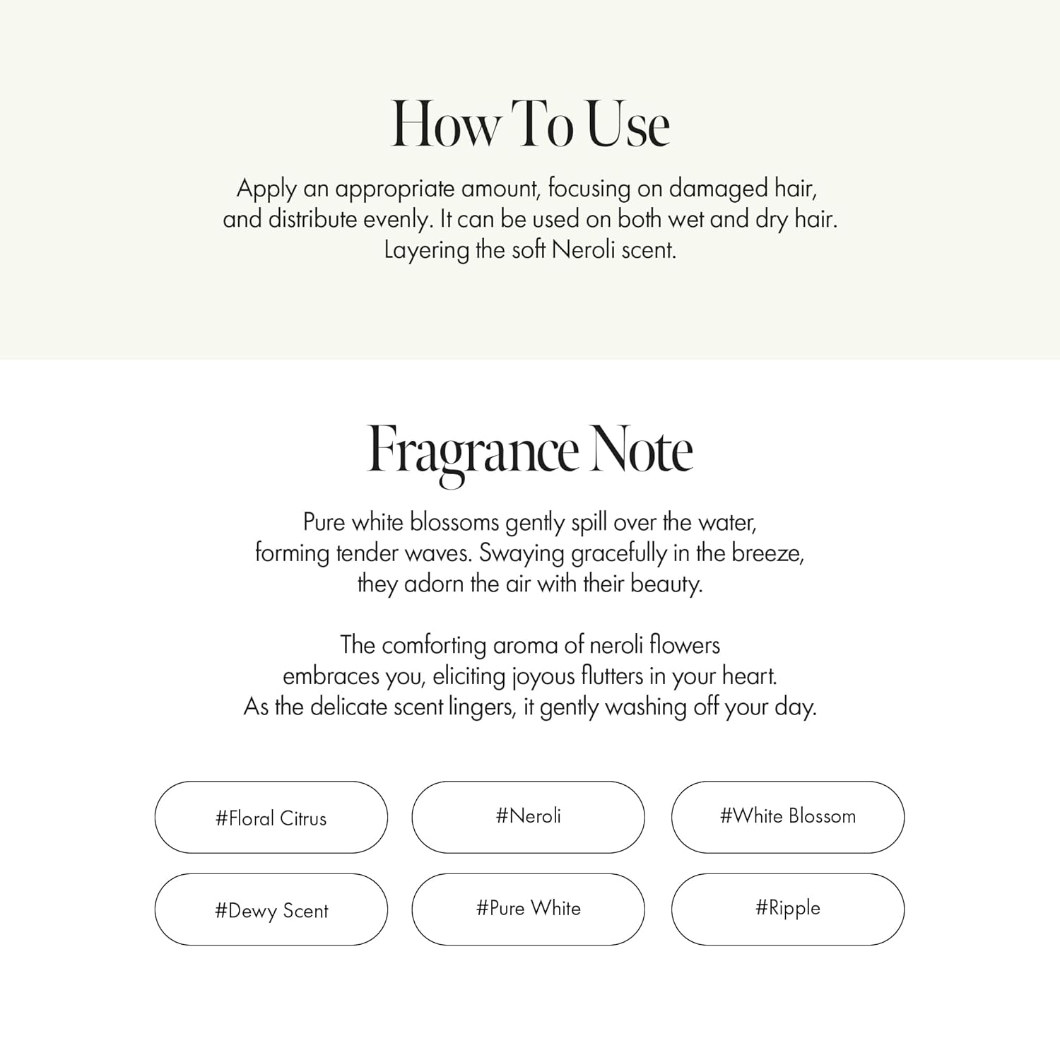 - Soft Shine & Daily Protection – Vitamin-rich Neroli Oil works alongside antioxidants to protect and hydrate while restoring natural bounce and gloss. Ideal for smoothing frizz, split ends, and dullness with a radiant finish.