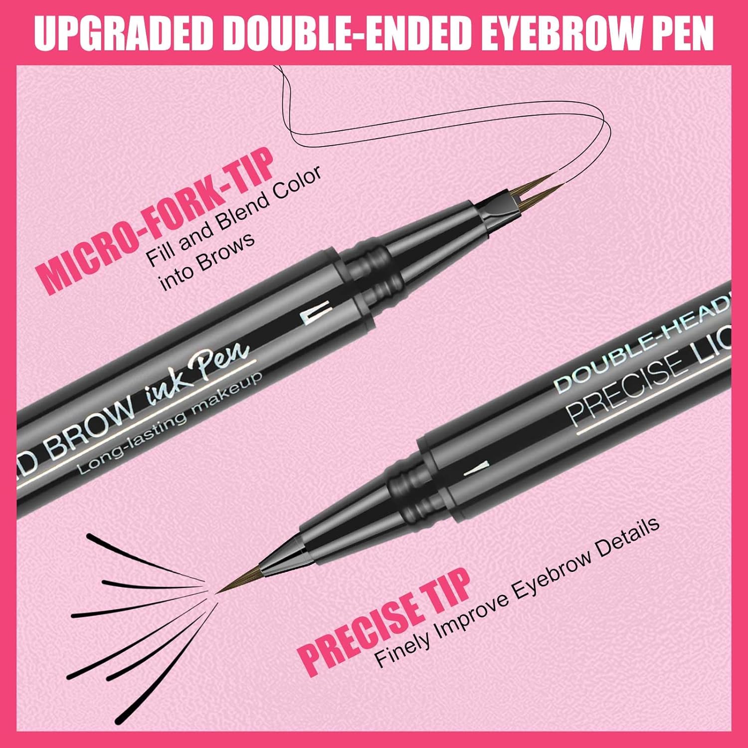 Microblading Eyebrow Pencil, Waterproof Eyebrow Pencils for Women Hair Like Natural Liquid Brow Contouring Pen, 2-in-1 Dual-Ended Long Lasting Brow Filler Pen with Precise Micro-Fork-Tip, Dark Brown