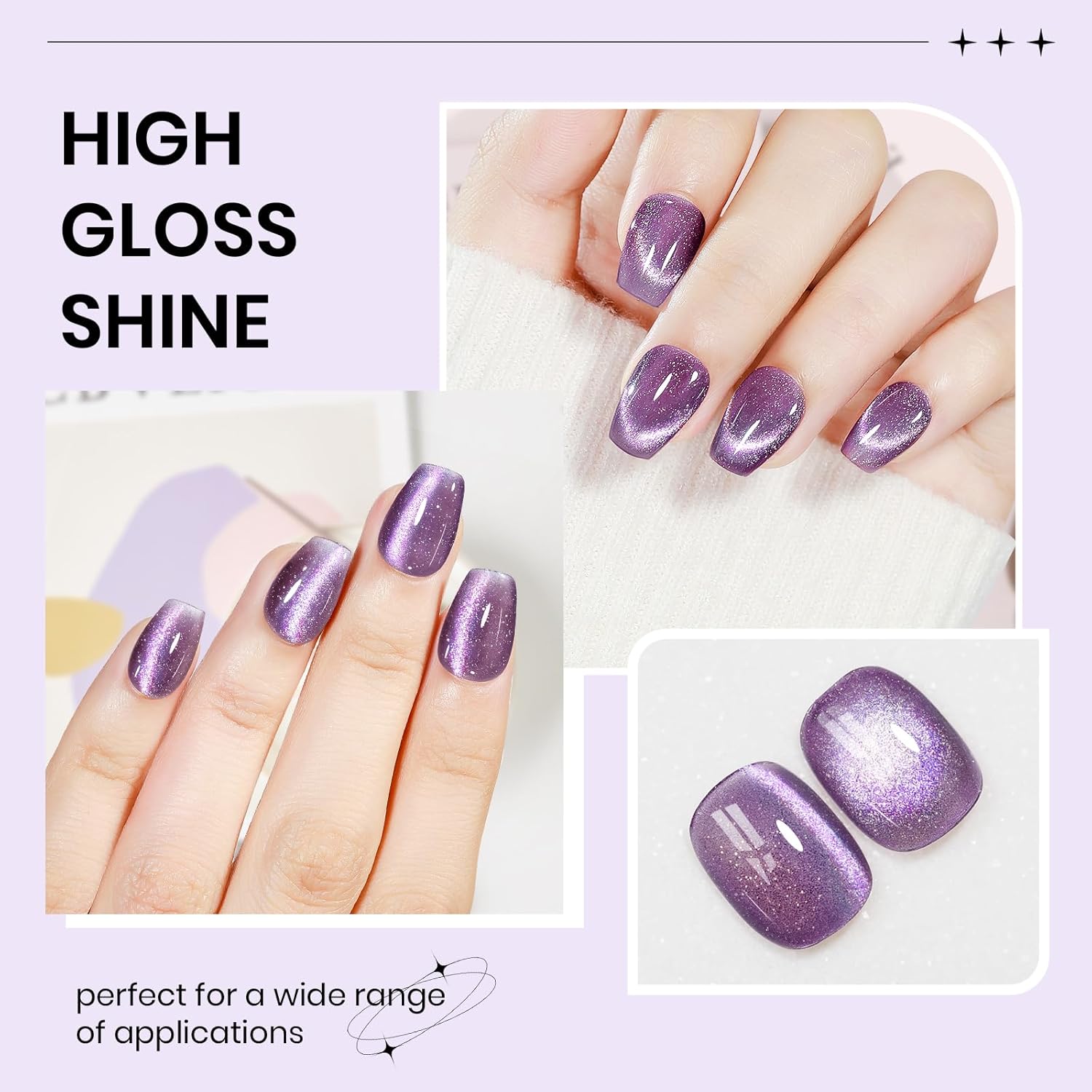 Purple Cat Eye Gel Polish, 15ML Glitter Crystal Cateye Gel Nail Polish Magnetic Reflective Effect with Magnet Soak Off Salon DIY at Home