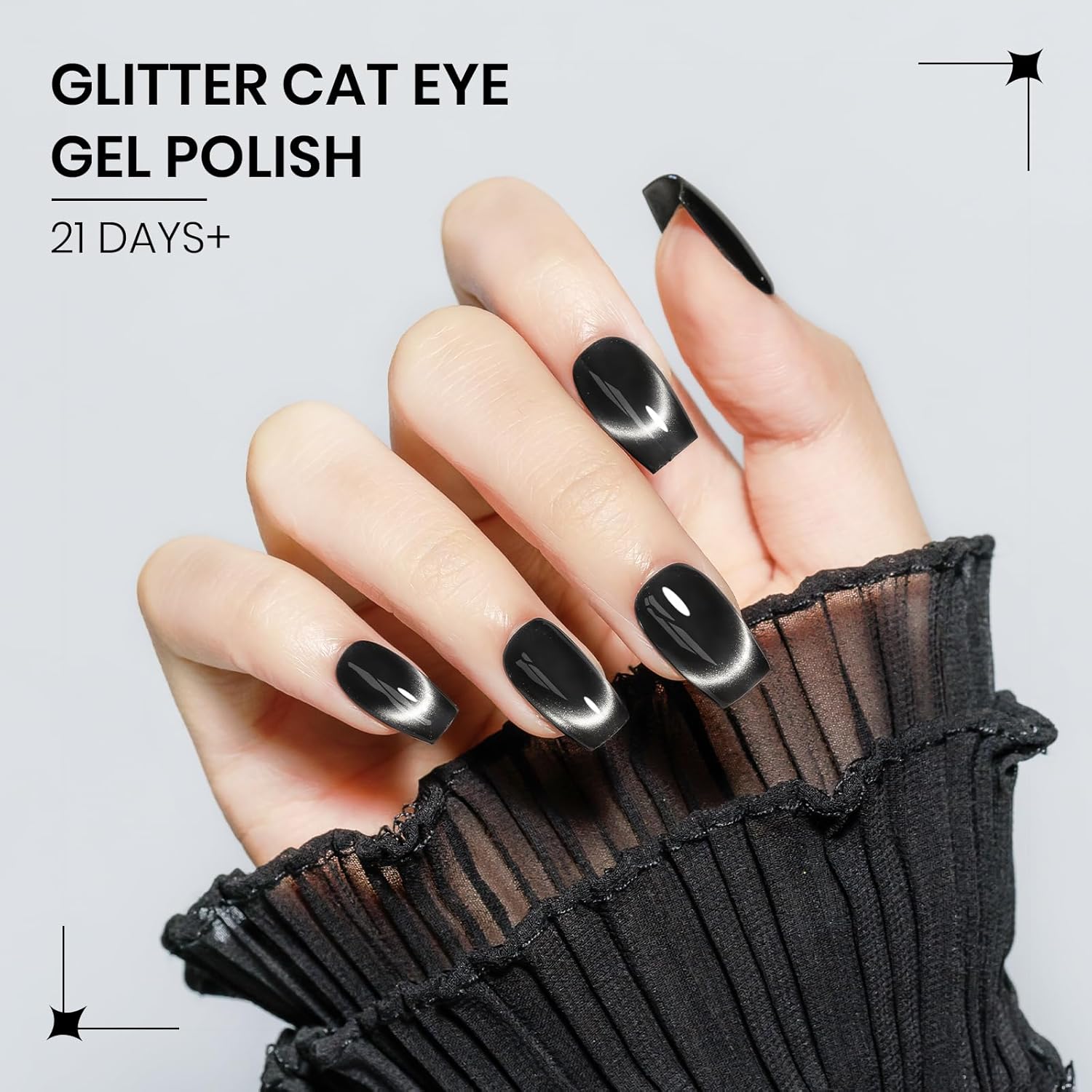 - Upgrade Your Nail with Cat Eye Gel: This black cat eye gel polish delivers a glass-like shine, leaving your nails looking clear and bright. With its upgrade cat eye effects, your nails will stand out from the crowd