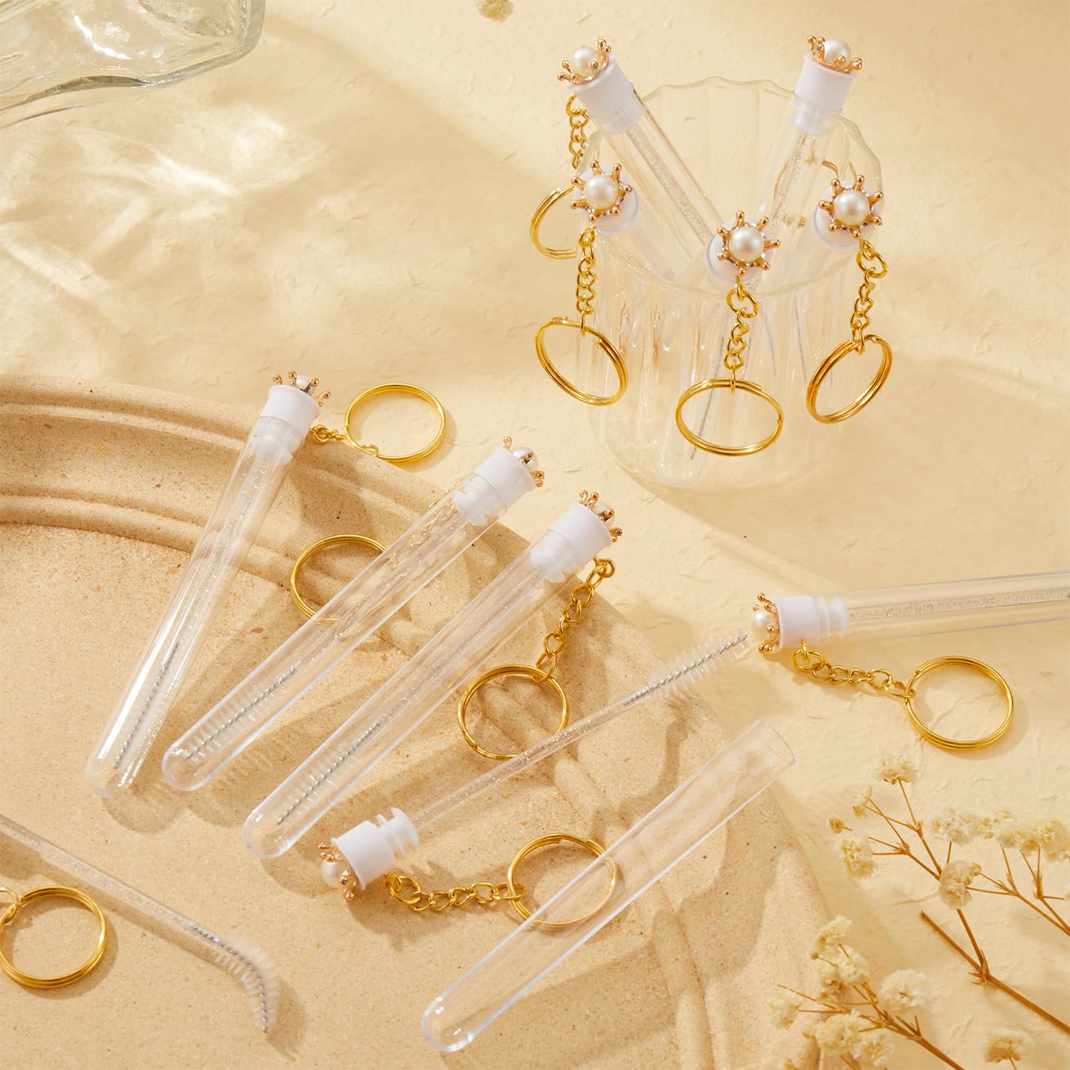 Upgrade 48 Pieces Disposable Mascara Wands Set,Include 24 Pcs Crystal Lash Spoolies Brush and 24 Pcs Reusable Keychain Empty Eyelash Brush Tubes