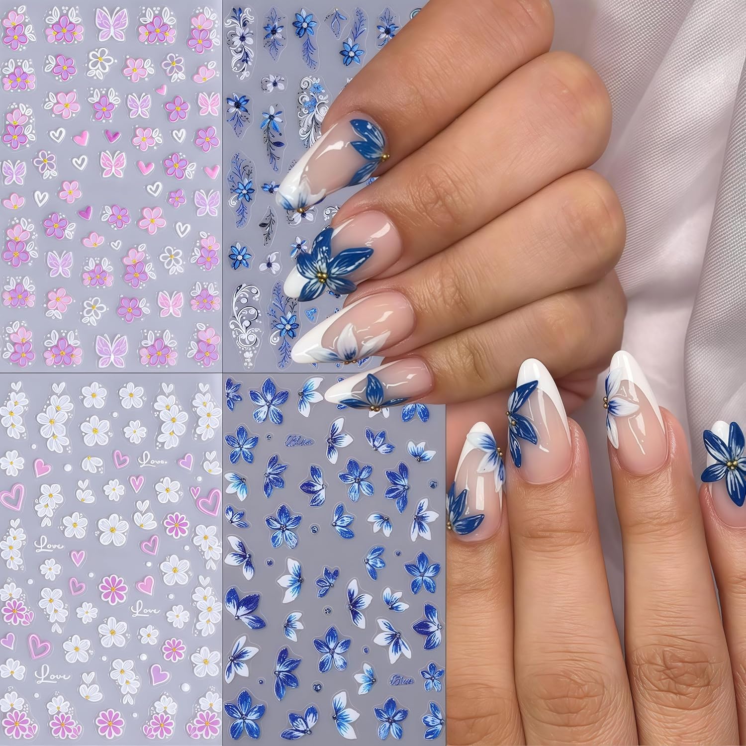 - Flower Nail Stickers- You will get 4 sheets blue flower nail art stickers for acrylic nails supply, many pattern for you to choose, colored flower nail designs, and satisfy your rich imagination of nail DIY