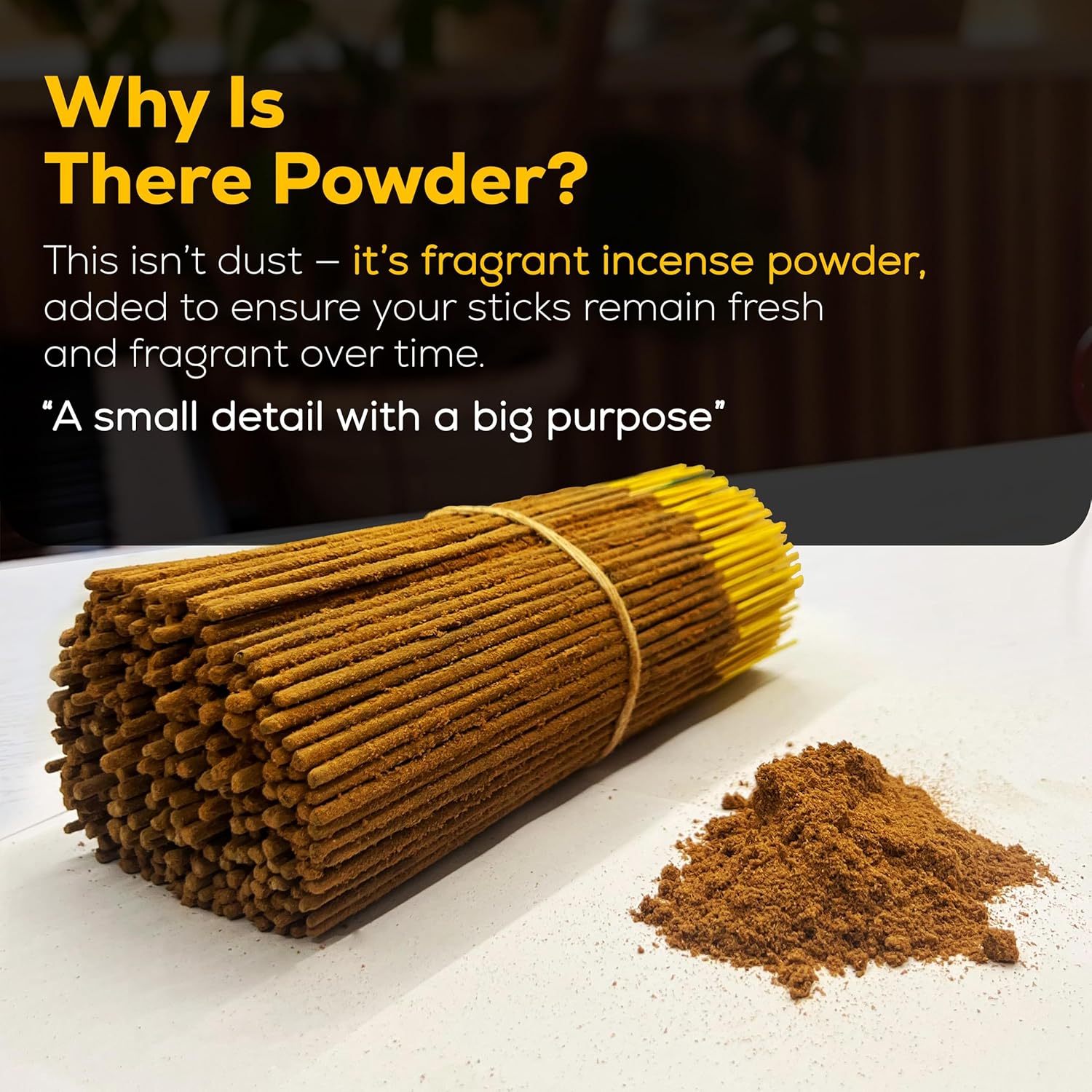- 100% NATURAL Natural incense Sticks completely handmade MADE FROM SCRATCH by blending natural resins, Herbs, Spices with aromatic wood powders, charred coconut powder fragrant oils and honey.No Dipping in Toxic Chemicals.