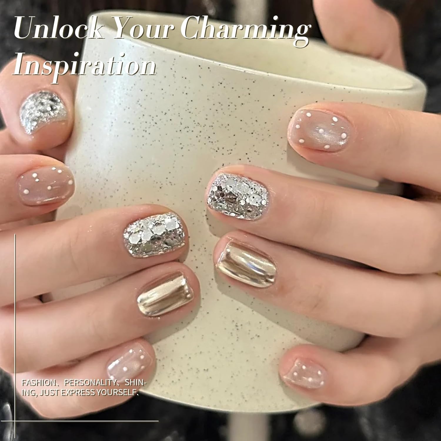 - [We Care for You]: Glitter Sequins in gel nail polish may settle over time; Before use, please remember to stir or shake it thoroughly; Different light sources, monitors and coating owns different color shades