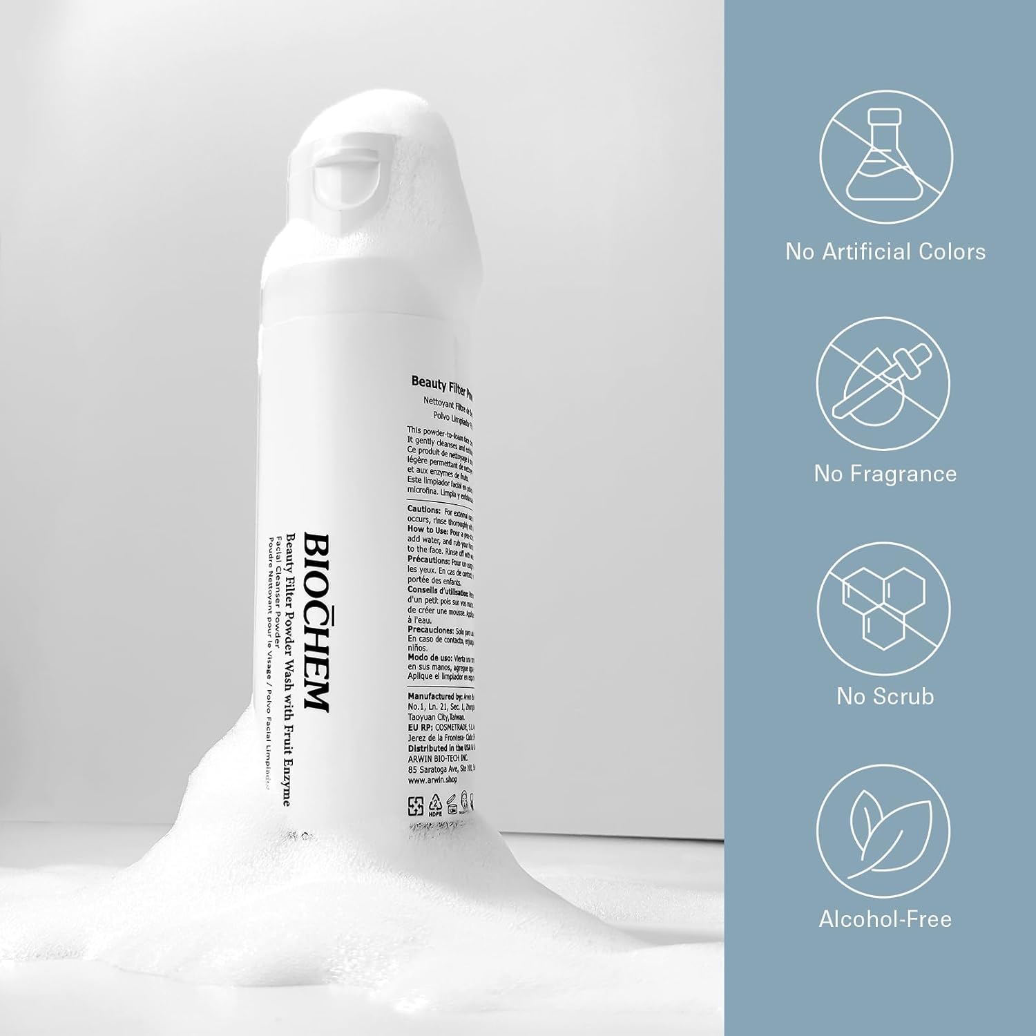 BIOCHEM Beauty Filter Powder Face Wash with Fruit Enzyme, Daily Wash with Papaya & Pineapple Enzyme, Gentle Plant-Based Low pH Exfoliator Cleanser for Women & Men, Sensitive Skin (1.59 fl oz / 45 g)