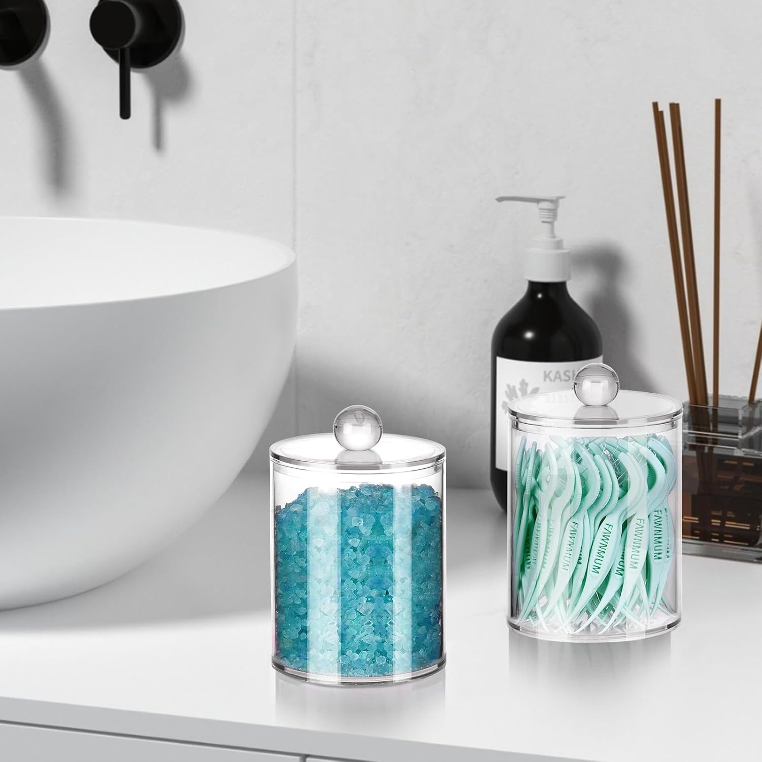 - PRODUCT INCLUDES:Product includes 3 x 10 oz,3 x 12 oz cotton swab jars with lids, smooth edges, safe and unbreakable
