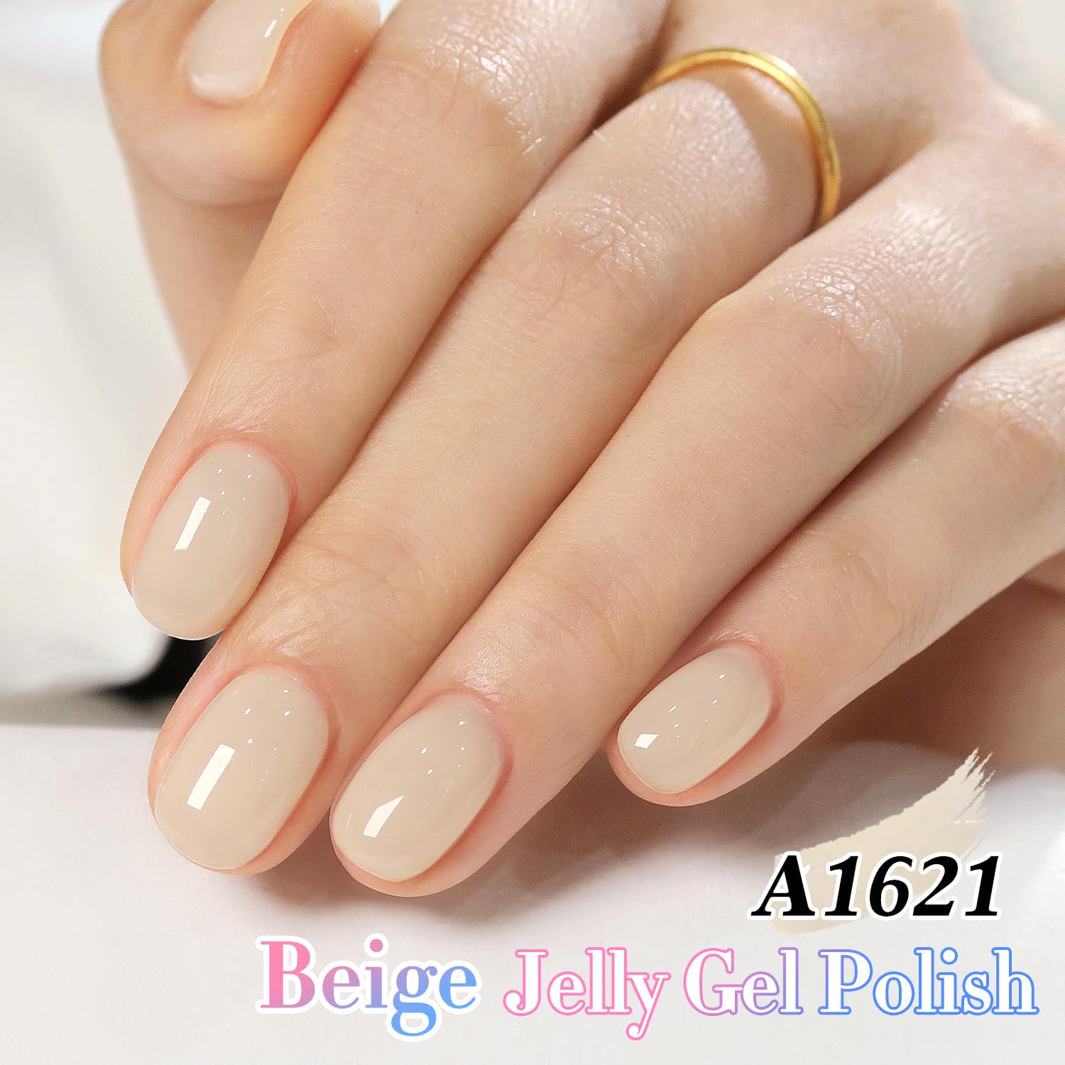 Double Rhythm 0.50 OZ Translucent Gel Polish Same Color Same Bottle Sheer Pastel Neutral Natural Milky 15 ML Jelly UV Nail Art DIY at Home (Beige-A1621)