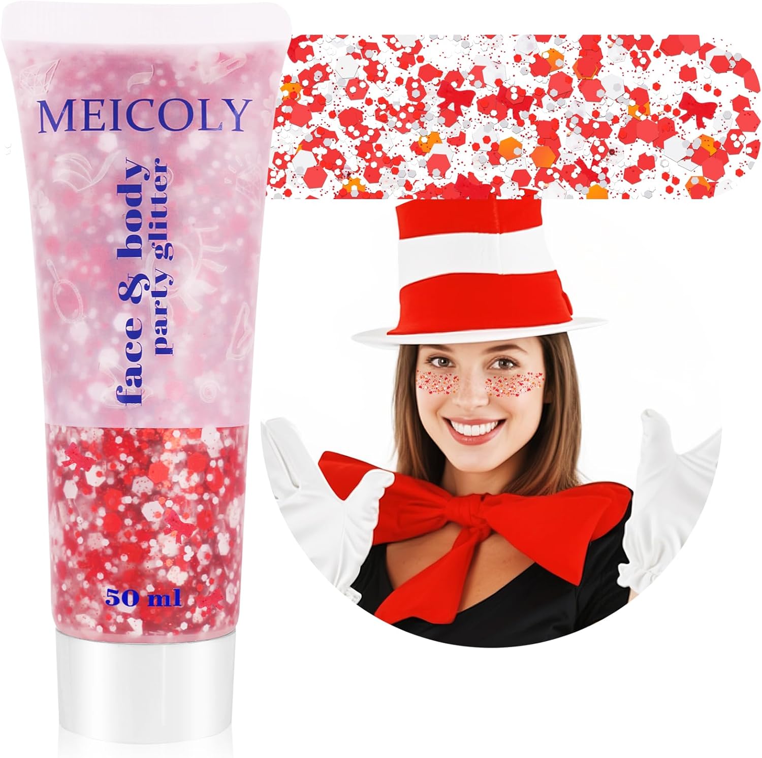 - Dazzling Sparkly Effect: Our red and white face glitter is specially designed to catch every eye on Reading Week.The ultra-fine glitter particles create a mesmerizing,sparkly finish that adds a touch of magic to your book-themed celebrations,making you stand out whether you're at a reading event or World Book Day.This red and white glitter is perfect as cat in the hat costume,great cat costume for kids and girls.