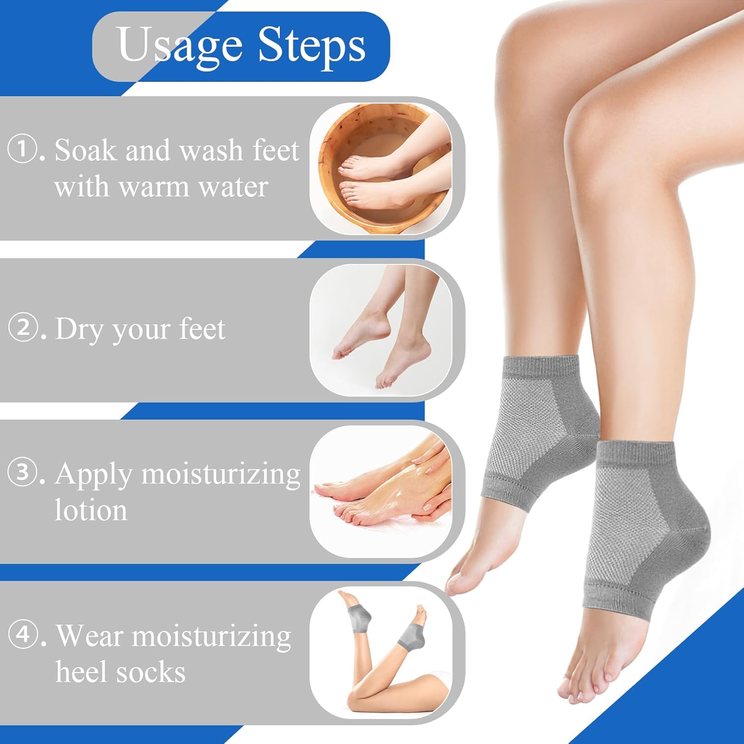- 【Moisturizing Gel】:The heel of this foot care sock is attached with a moisturizing gel, which can not only help lock moisture, but also reduce friction between the shoe and the foot, thus protecting the heel. Great for cracked heel repair and get healthy feet.