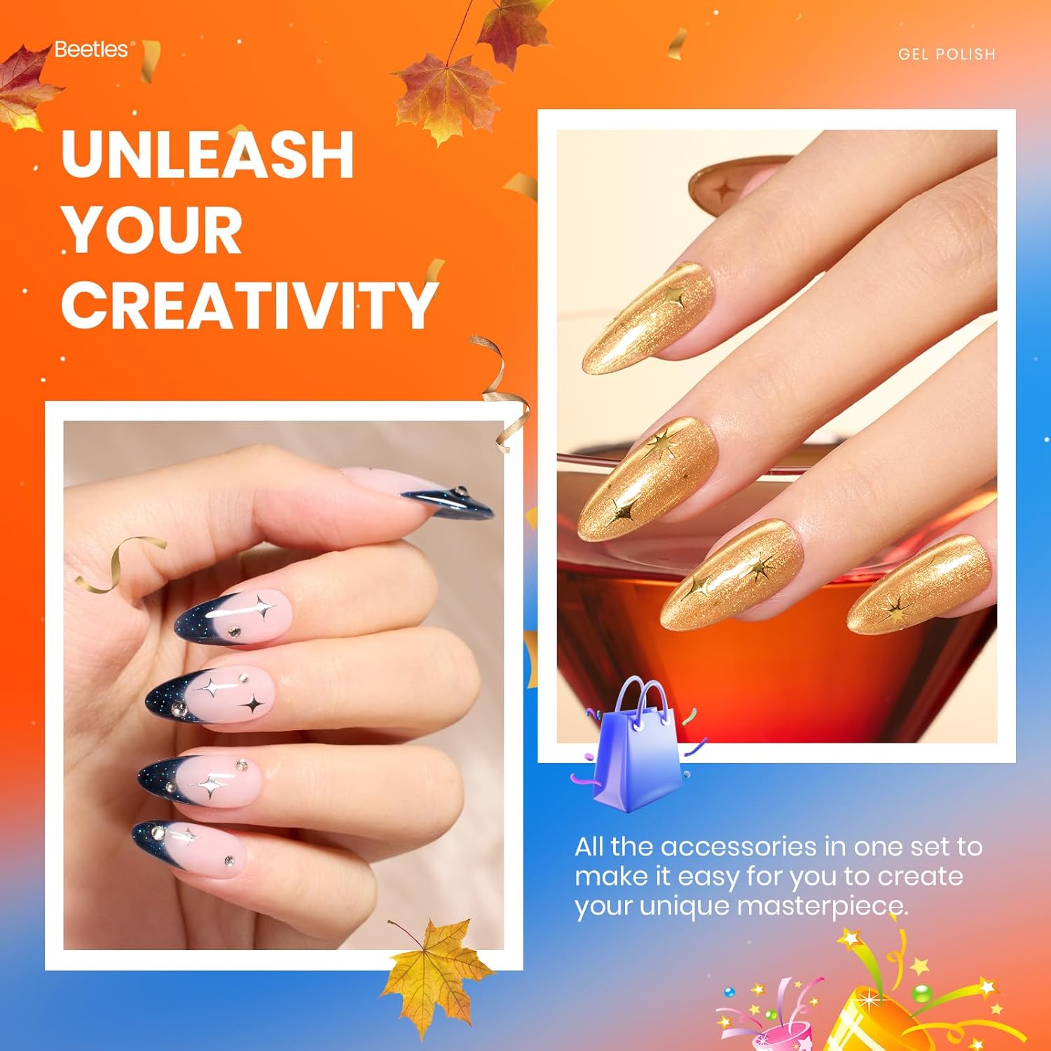- 【Warm Tips】: Beetles fall nail fest gel polish set is professionally formulated for nail use only. Avoid contact with eyes, mouth and skin. In case of contact, rinse with water immediately. If you feel unwell, discontinue use and seek medical attention. If you have any questions about the product, please do not hesitate to contact us.