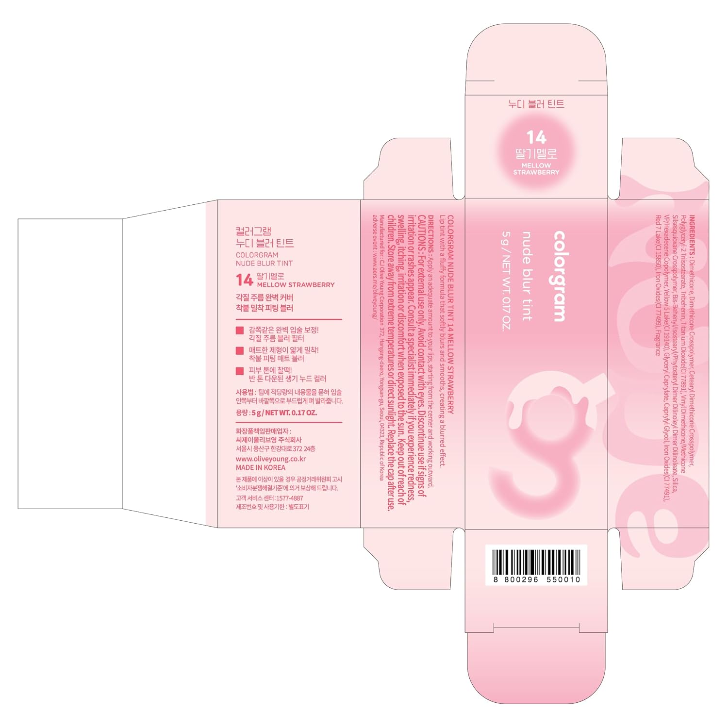COLORGRAM NUDE BLUR TINT 14 MELLOW STRAWBERRY | Soft Velvet Matte Liquid Lipstick & Cheek Tint | Lightweight Blurring Tint for a Smooth & Airbrushed Finish | Long-Lasting & Non-Sticky Formula