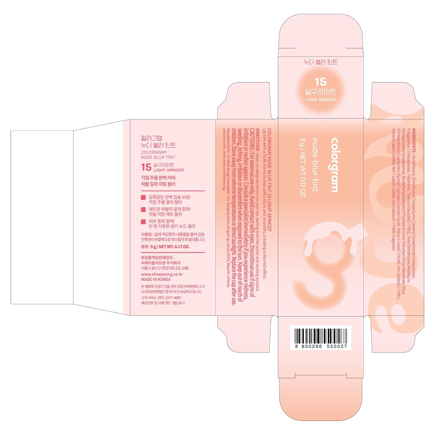 COLORGRAM NUDE BLUR TINT 15 LIGHT APRICOT | Soft Velvet Matte Liquid Lipstick & Cheek Tint | Lightweight Blurring Tint for a Smooth & Airbrushed Finish | Long-Lasting & Non-Sticky Formula