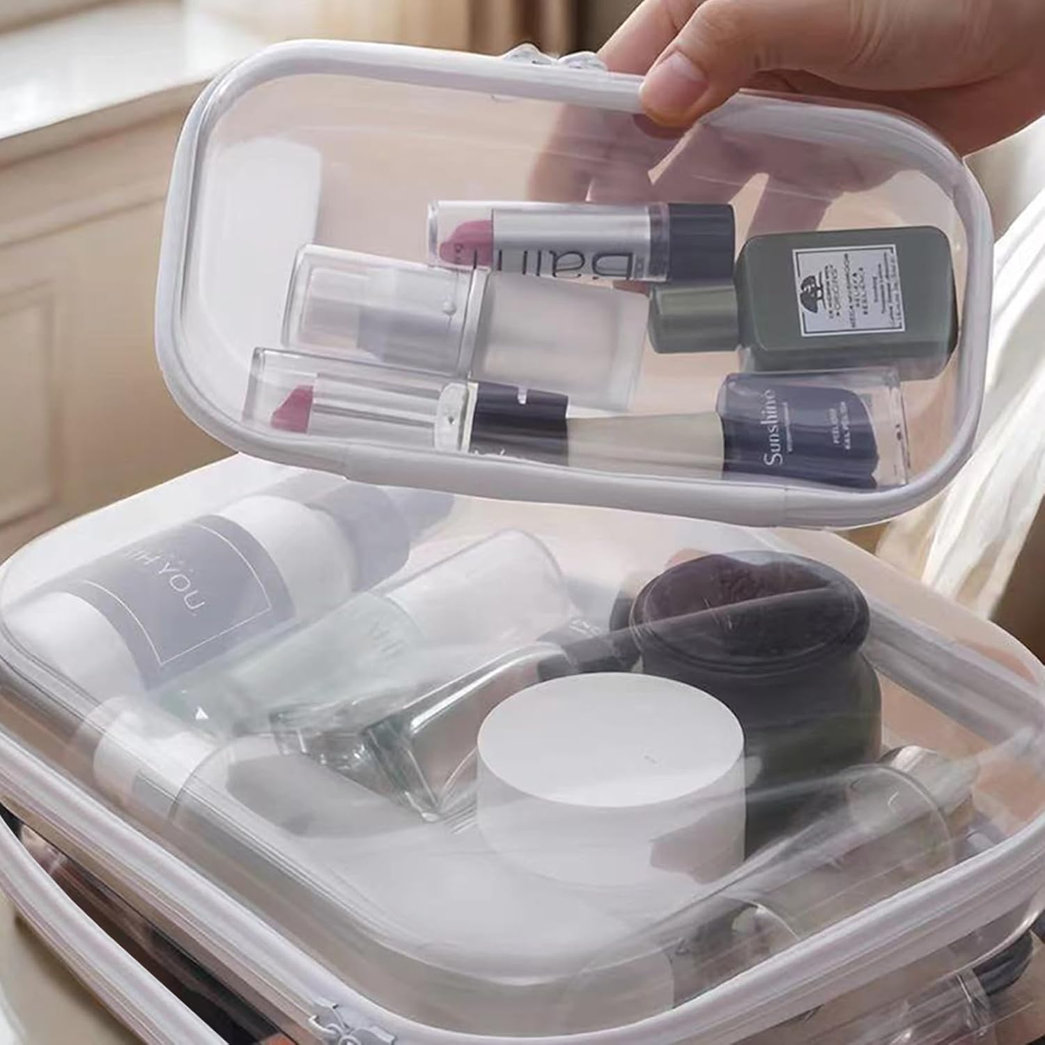 - 【Travel-Ready Design】 TSA-friendly transparent travel bags for toiletries let you instantly identify contents. Water-resistant hard zipper case prevents spills in luggage. Medium case fits 3-4oz bottles for carry-ons. Use small cases as clear makeup bags for lipsticks or zippered hard pouches for cables/medications.