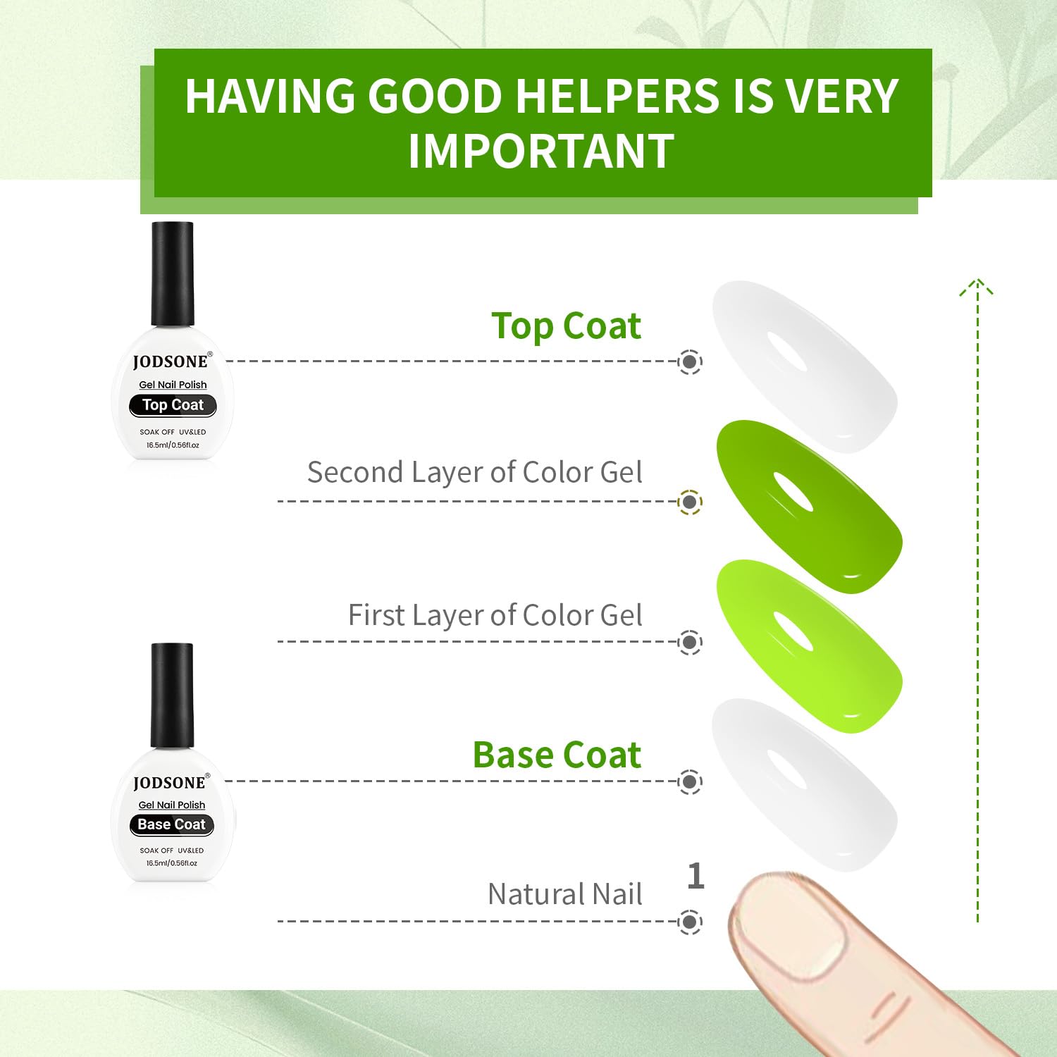 JODSONE 2Pcs 16.5ml Top Coat Base Coat Gel Polish Set No Wipe Clear Long Lasting Need U V Lamp Cured at Home DIY Nail Salon Girl Gift