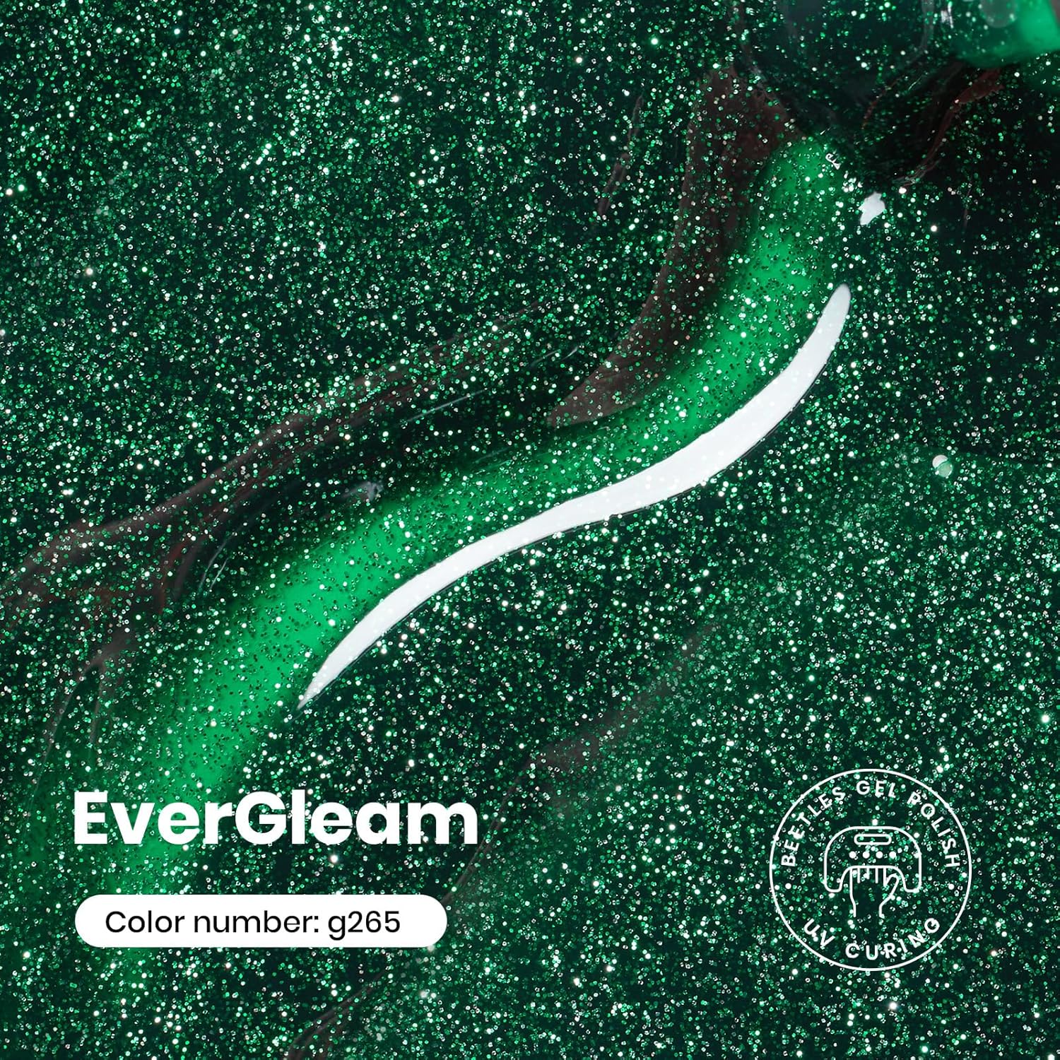 Beetles Christmas Green Gel Nail Polish – EverGleam Glitter Gel Polish, 15ml Soak Off UV LED Shimmer Emerald Green Nail Art Color, Long Lasting Glossy Manicurefor Salon and DIY Nail