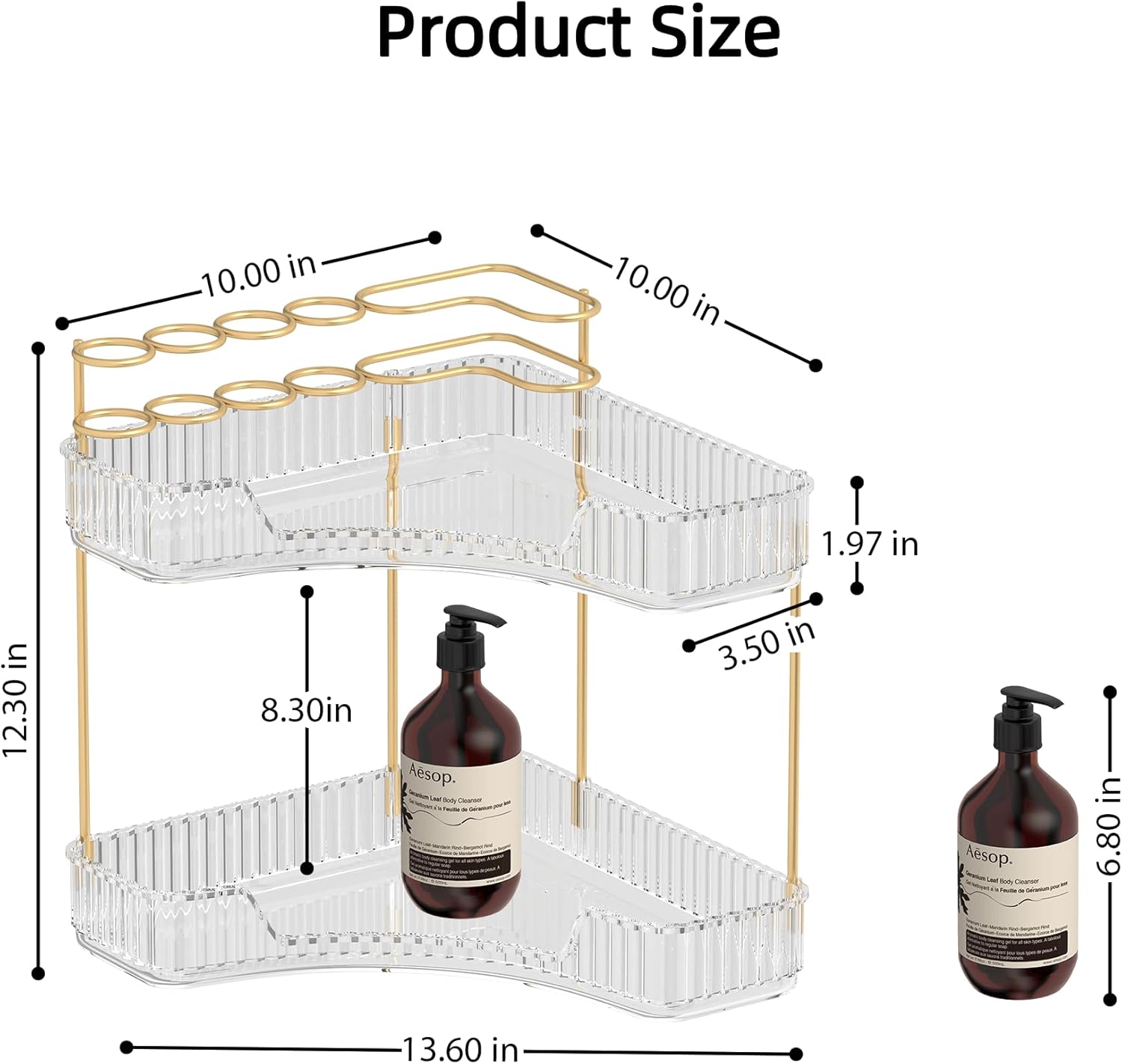 - 【90° Corner Bathroom Counter Organizer】The 90° quarter-circle design maximizes the unused space that snugly fits bathroom/vanity corners. Multi-layer structure adds 100% vertical storage while occupying minimal counter space.