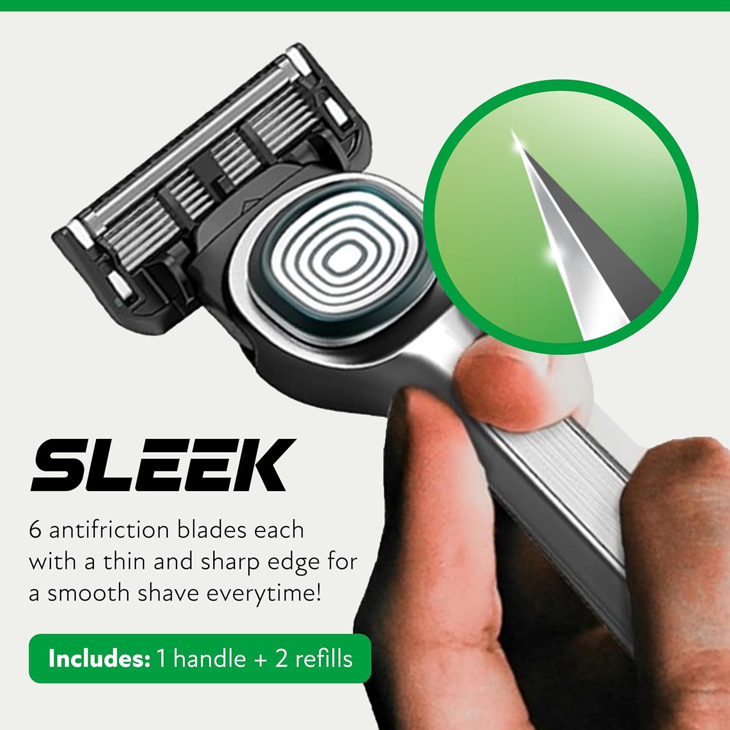 DORCO SLEEK Six Blade Razor System with Multi-Flex Technology, Precision Shaving Razor Handle, Includes 2 Cartridges