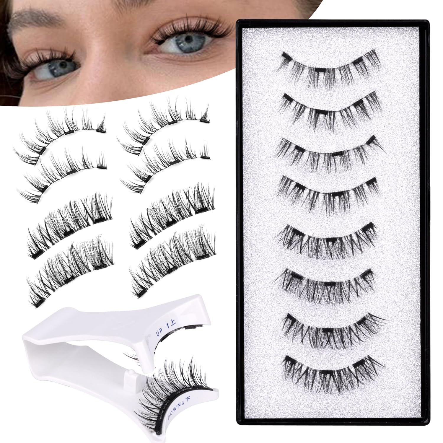 - Magnetic Eyelashes No Glue Needed - If you are sensitive to eyelash glue, you gotta try our magnetic eyelashes which is no glue needed yet still strong hold. We selected carefully and choose classic cat eye lash style, get a natural glamorous look in 3 seconds with magnetic lashes