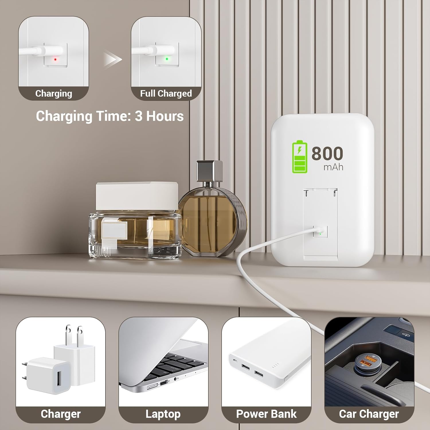 - 【Rechargeable LED Mirror】The small mirror features 32 built-in high-brightness LED beads and an 800 mAh battery. A full charge takes only 3 hours and it can illuminate for 6-54 hours