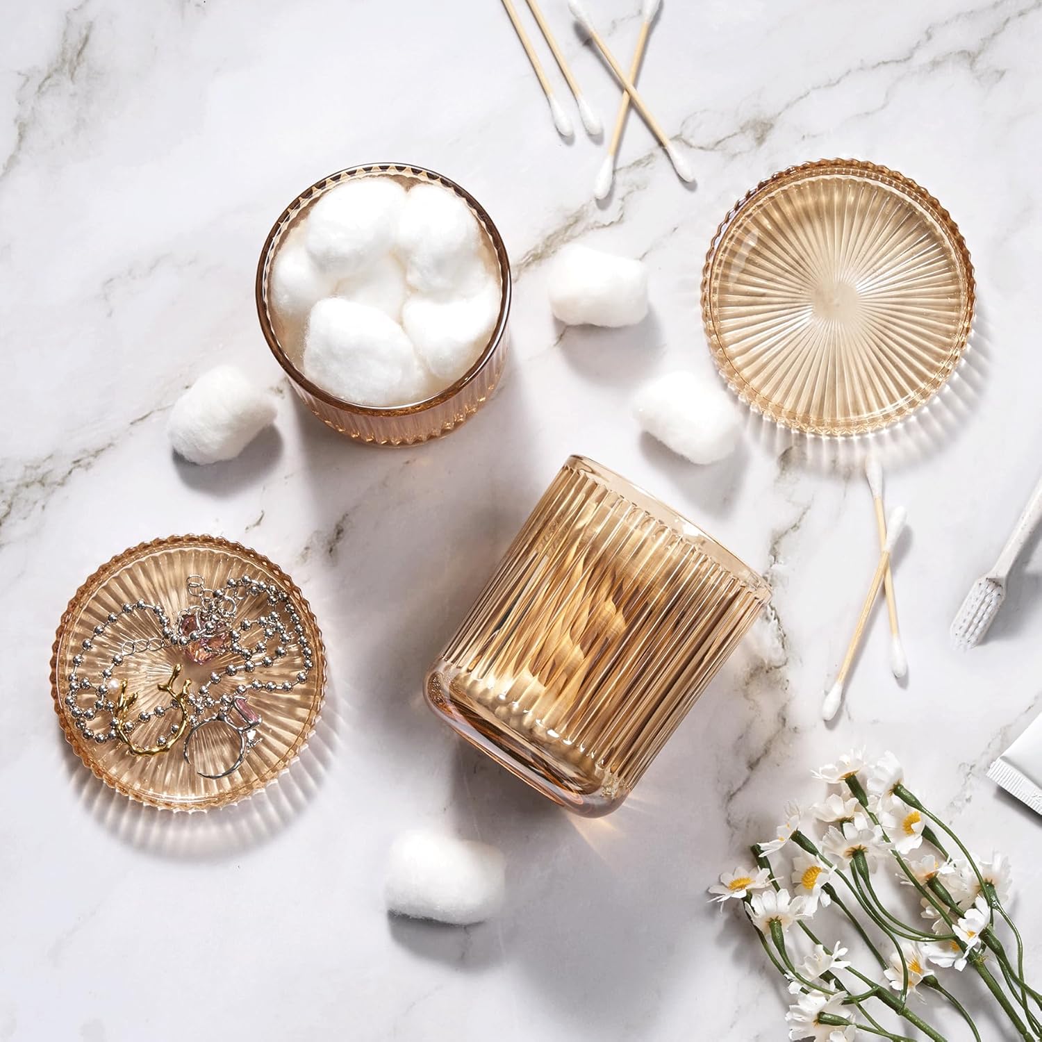 - CLASSIC STYLE:These softly translucent bathroom accessories create a warm, vintage vibe—perfect for enhancing boho or farmhouse décor. Both functional and beautiful, they add charm to any bathroom and make a thoughtful housewarming or Mother’s Day gift.