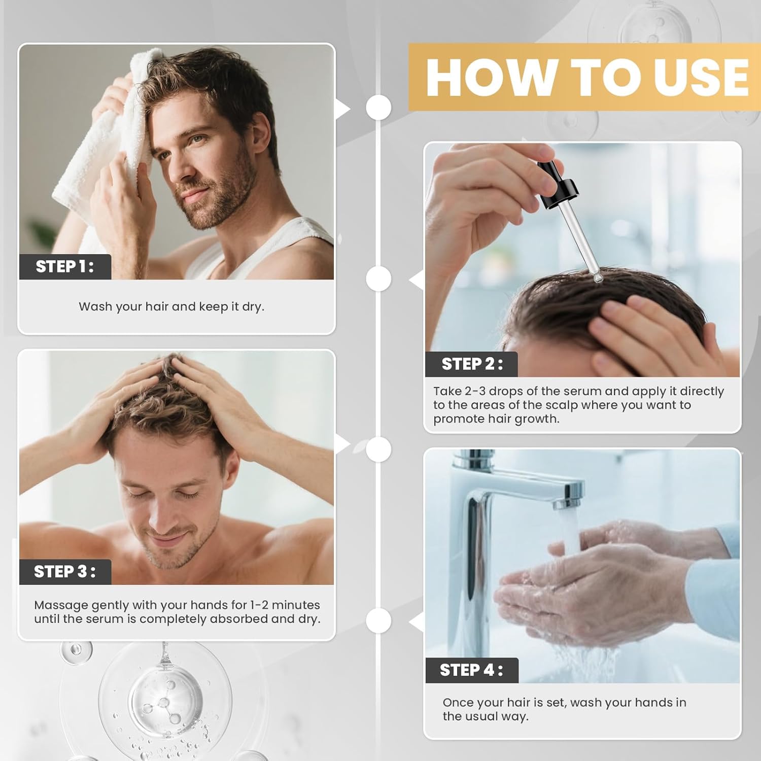 - Minoxidil hair growth strong and Fragile Hair :5% minoxidil revitalizes hair roots natural oils to resist environmental stress. Hair growth serum convenient dropper accelerates the hair grow effect, improves scalp health. Minoxidil hair growth liquid can be quickly absorbed, perfectly suitable for morning and evening care.whether it is focusing on beard growth or achieving the of hair growth. Minoxidil serum transforms sparse hair into strong and shiny hair,meet the needs of hair growth
