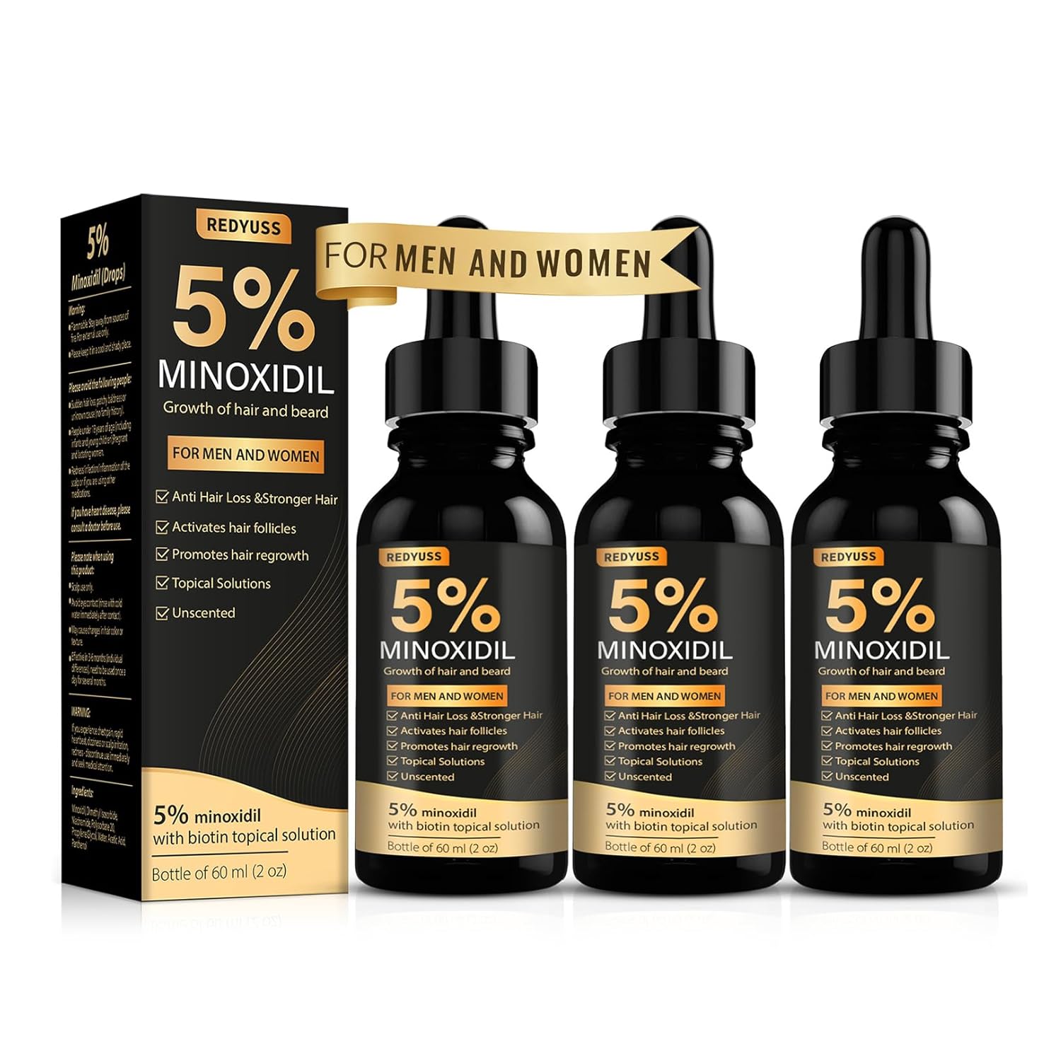 - Relieve Hair Loss: Topical minoxidil is designed for men and women, aiming to deeply nourish the scalp and strengthen the hair roots for hair regrowth, minoxidil for women effectively slowing down the process of hair loss. Minoxidil for hair growth can resist the external environment on the scalp and hair damage, minoxidil hair growth serum reduce situation caused by environmental pollution and other factors. Both men and women can use minoxidil to regain thick hair and glow with confidence