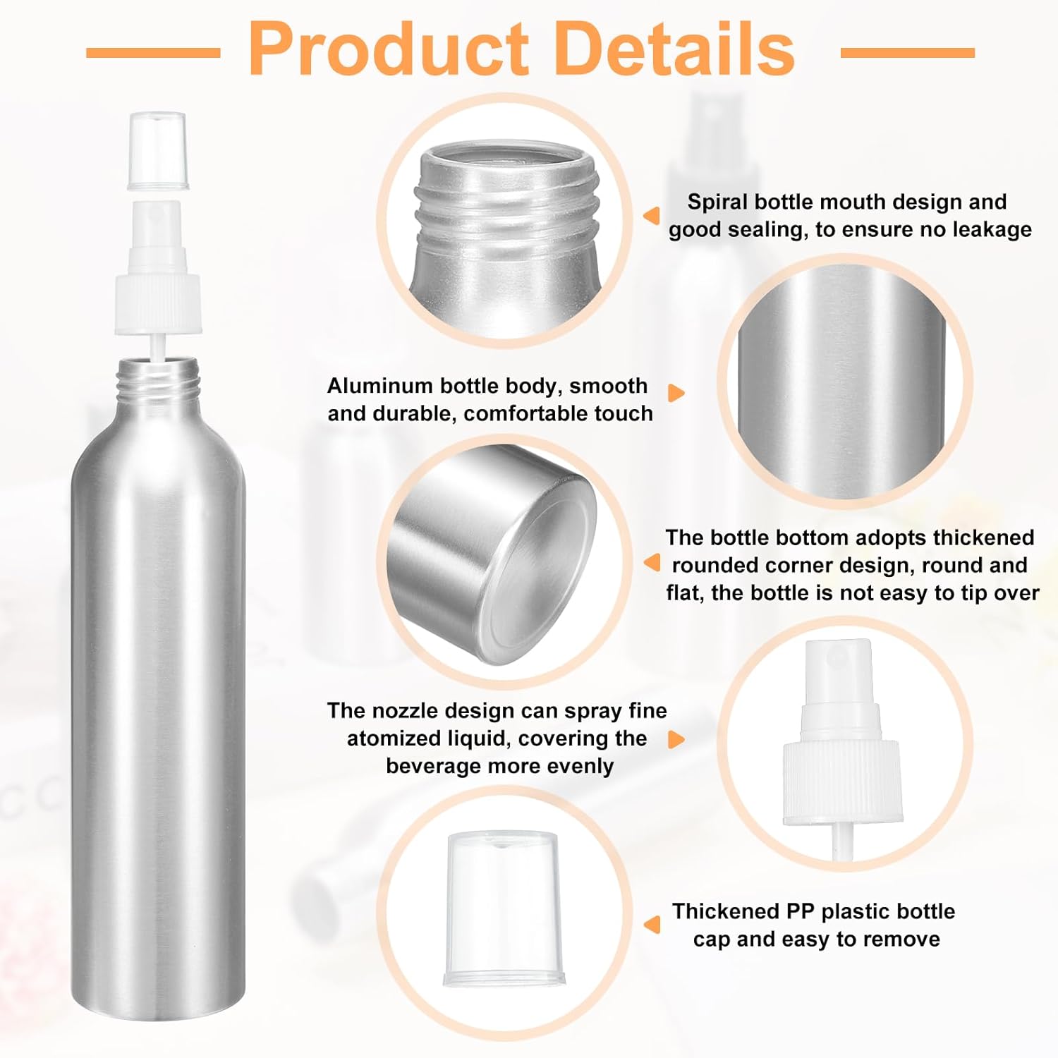 - Applications - This metal refillable container is widely used in kitchens, bathrooms, offices, travel vacations, etc., and can be used to store floral water, perfume, spray, essential oils, air freshener, toner, etc